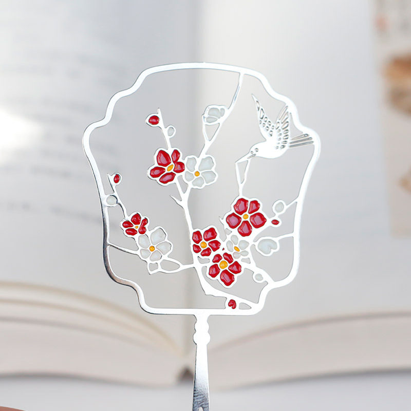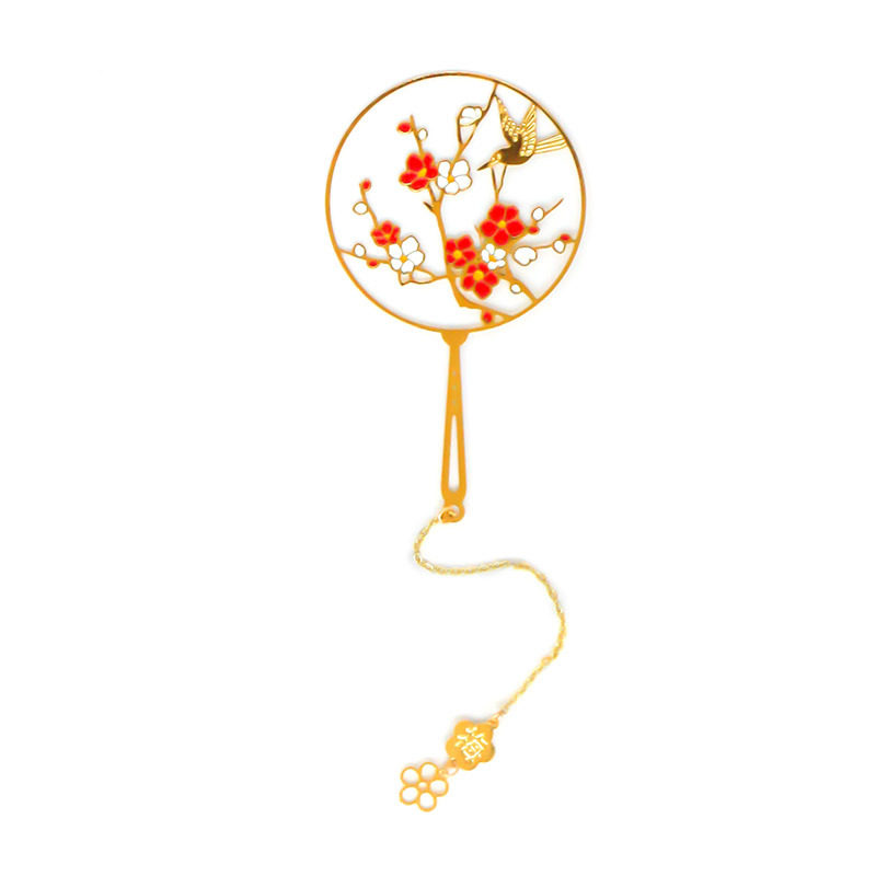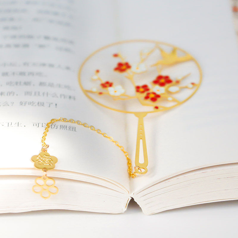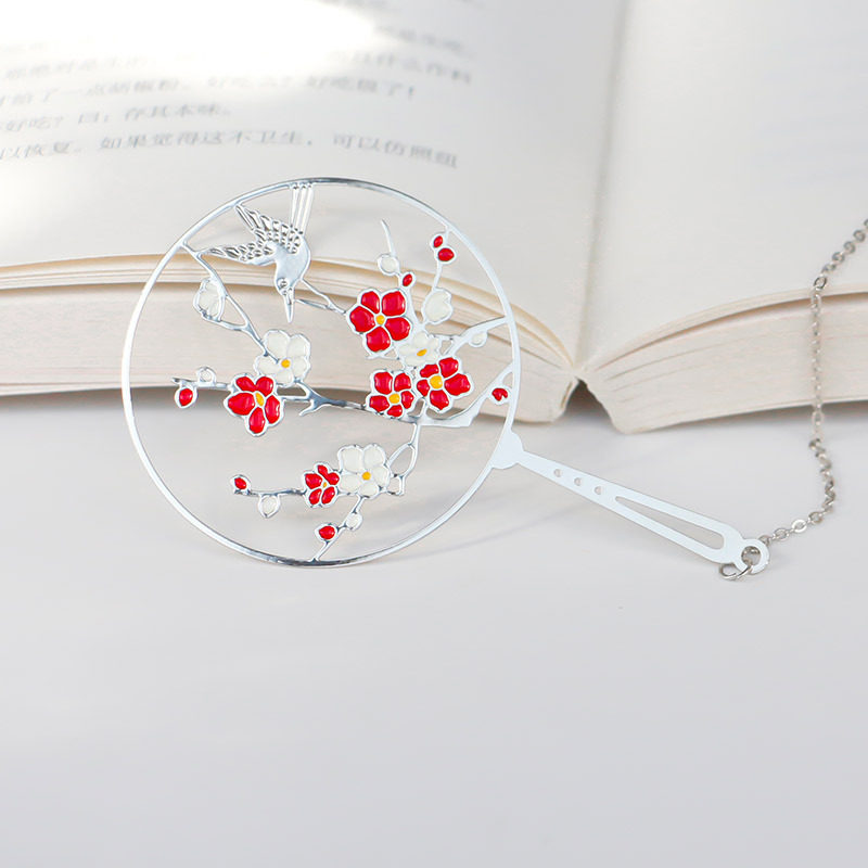 团扇金属书签中国风古风创意精致镂空烤漆工艺文创景区