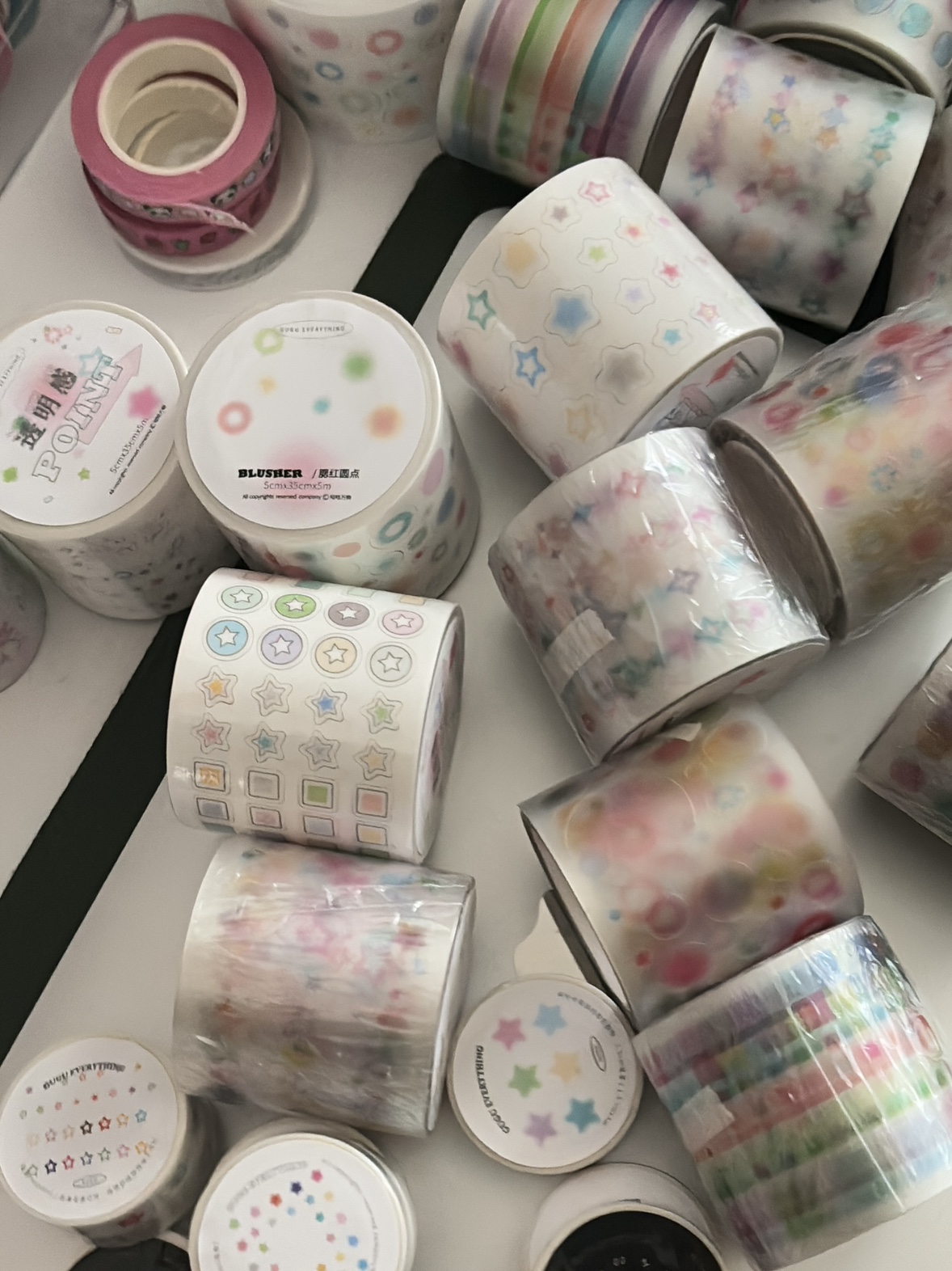 (现货)透明感腮红圆点星星贴纸卷模切胶带基础百搭手帐