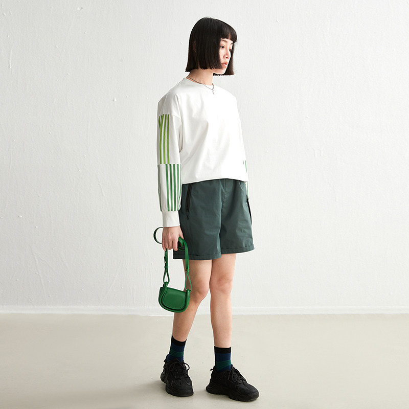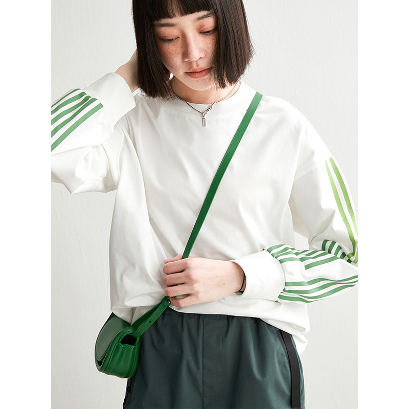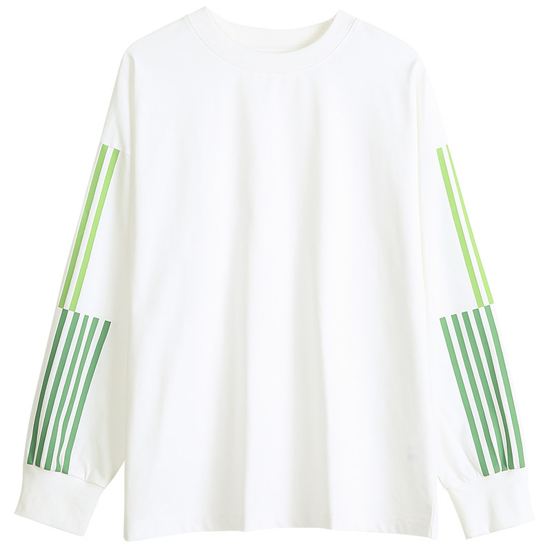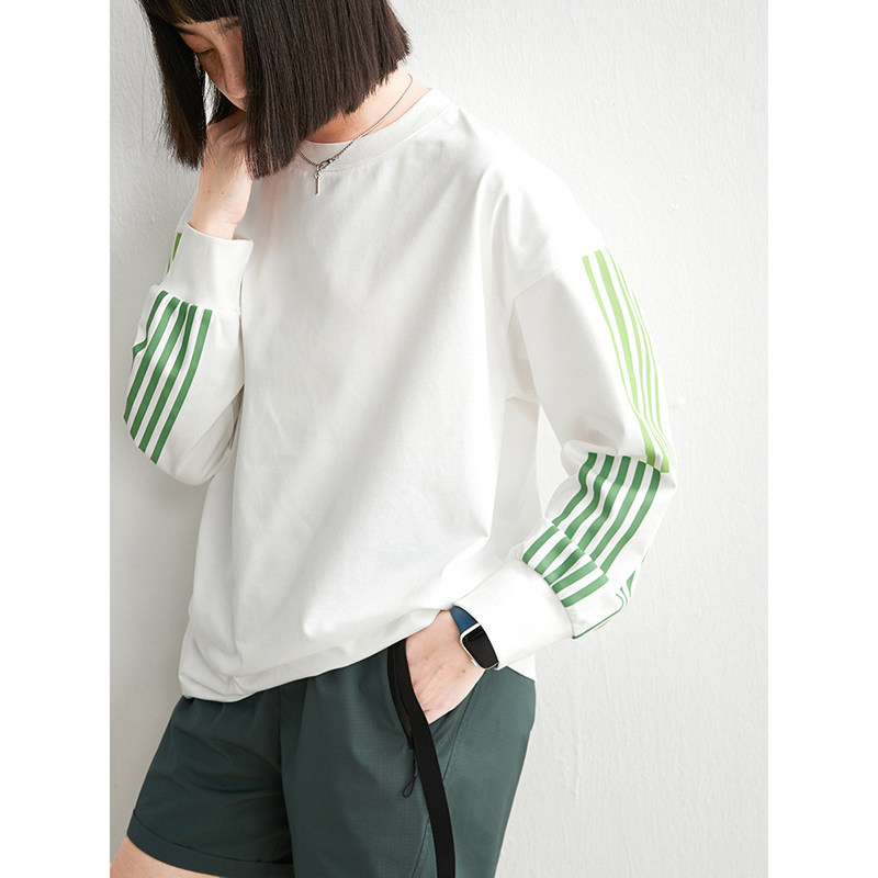 CLOUDSPACE【汽水Tee】条纹印花凉感索罗娜圆领长袖T恤白t上衣