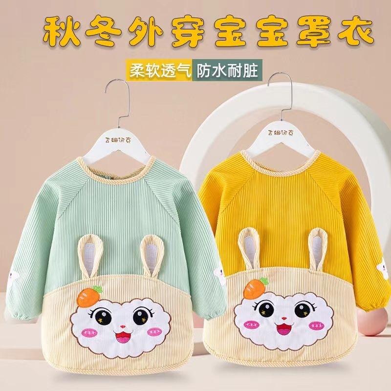 宝宝罩衣儿童防脏秋冬季外穿洋气反穿衣围裙婴儿围兜护衣系带绑带