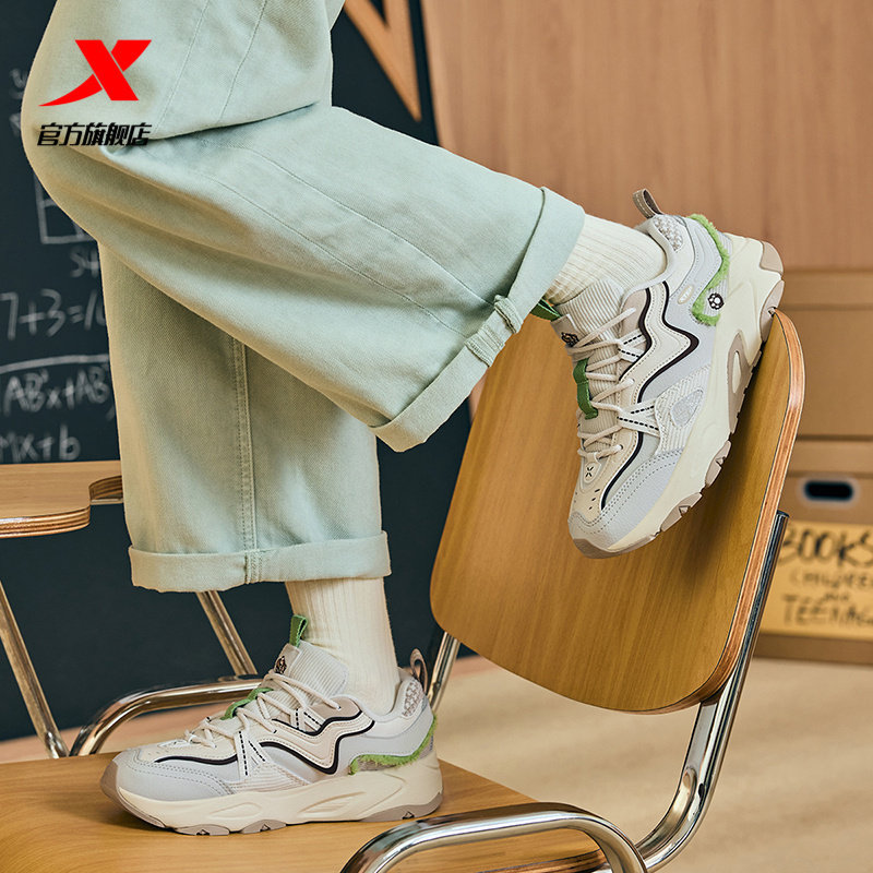 王鹤棣同款丨特步巴斯克2休闲鞋女复古老爹鞋增高运动鞋男鞋棉鞋
