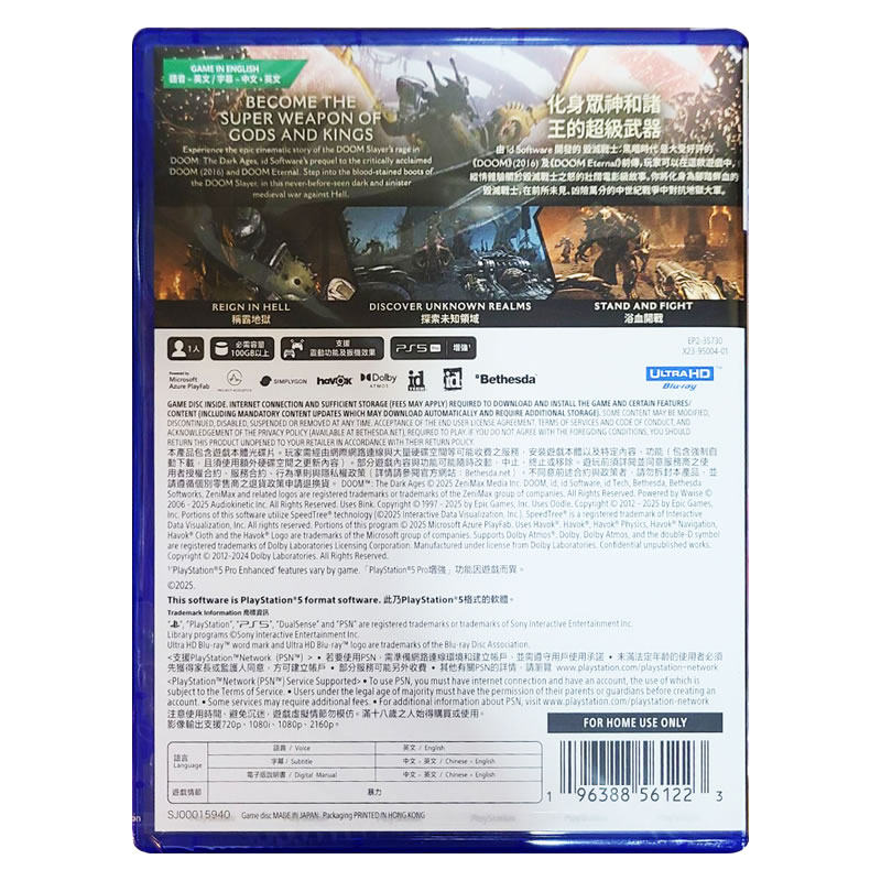 香港直邮 PS5游戏光盘 港中 毁灭战士黑暗时代 PS5游戏 现货