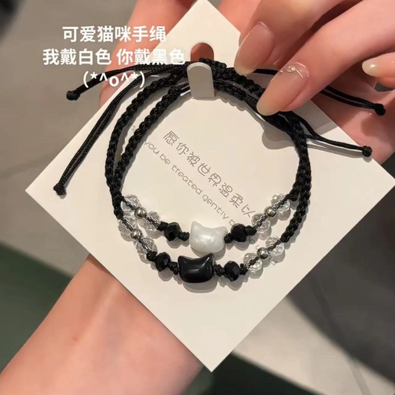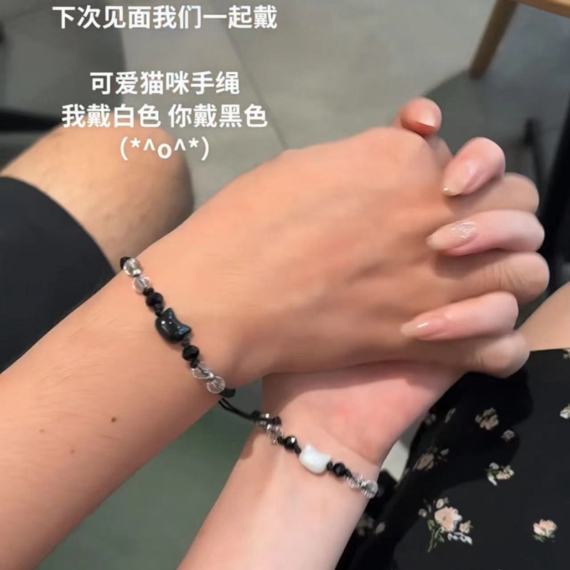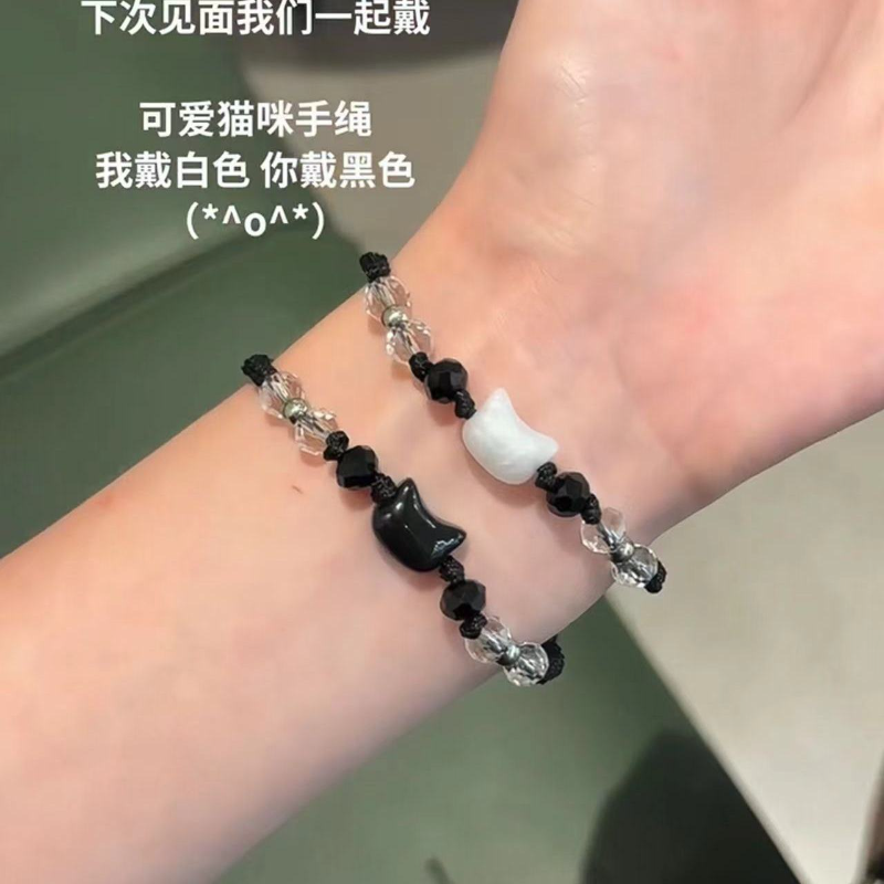 小红书爆款彩钻黑猫白猫手链精致小众编织情侣本命年手绳简约百搭