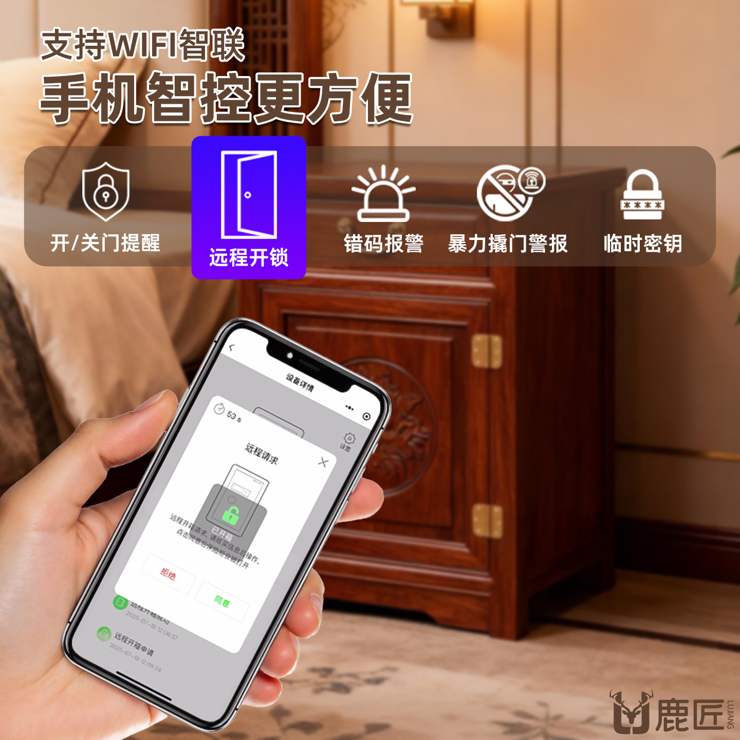 鹿匠实木保险柜新中式家用小型指纹全刚防盗手机远程存钱看不出来的隐藏式一体床头保险箱