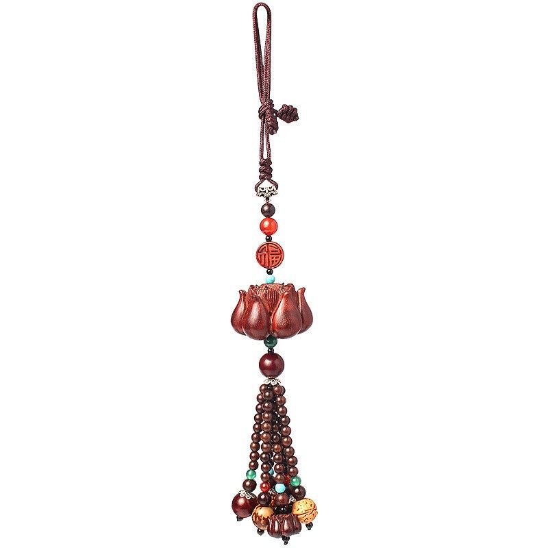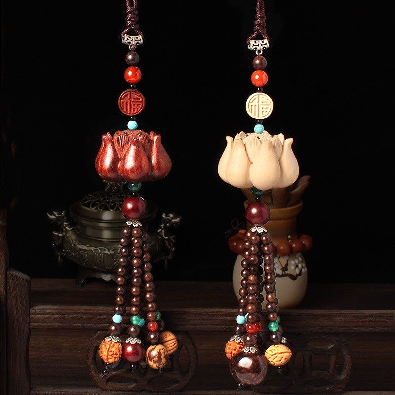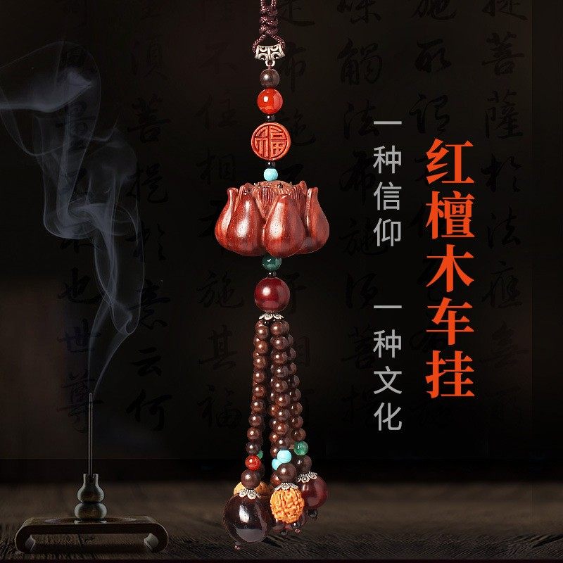 新款汽车挂件高档原木车内装饰紫檀挂饰好运莲莲花挂件