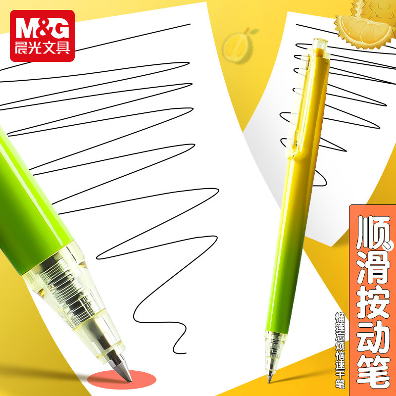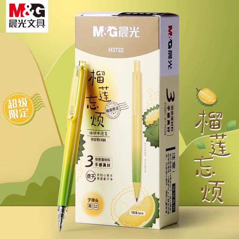 晨光优品榴莲忘烦限定按动中性笔定制刻字三倍密度速干学生考试专用签字笔金属质感高颜值0.5黑色子弹头水笔