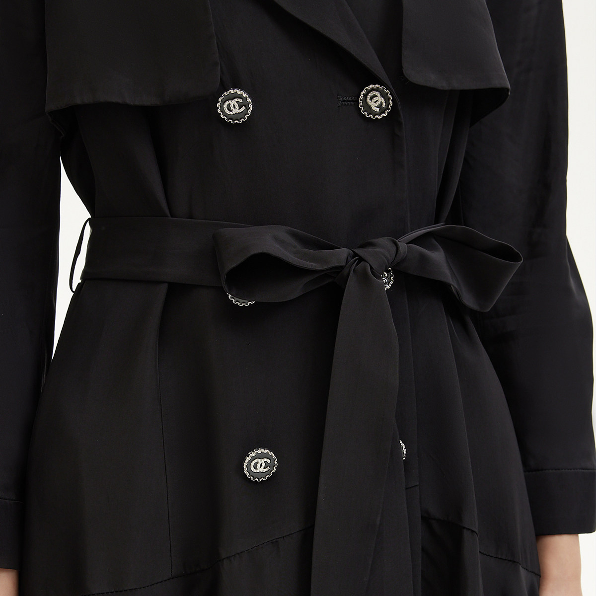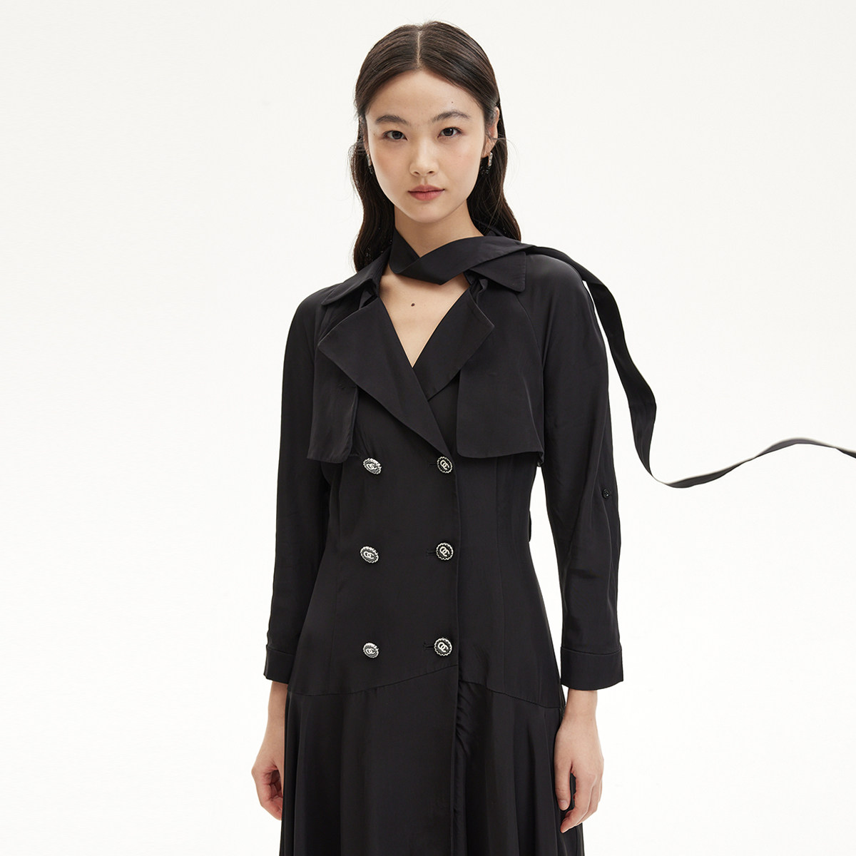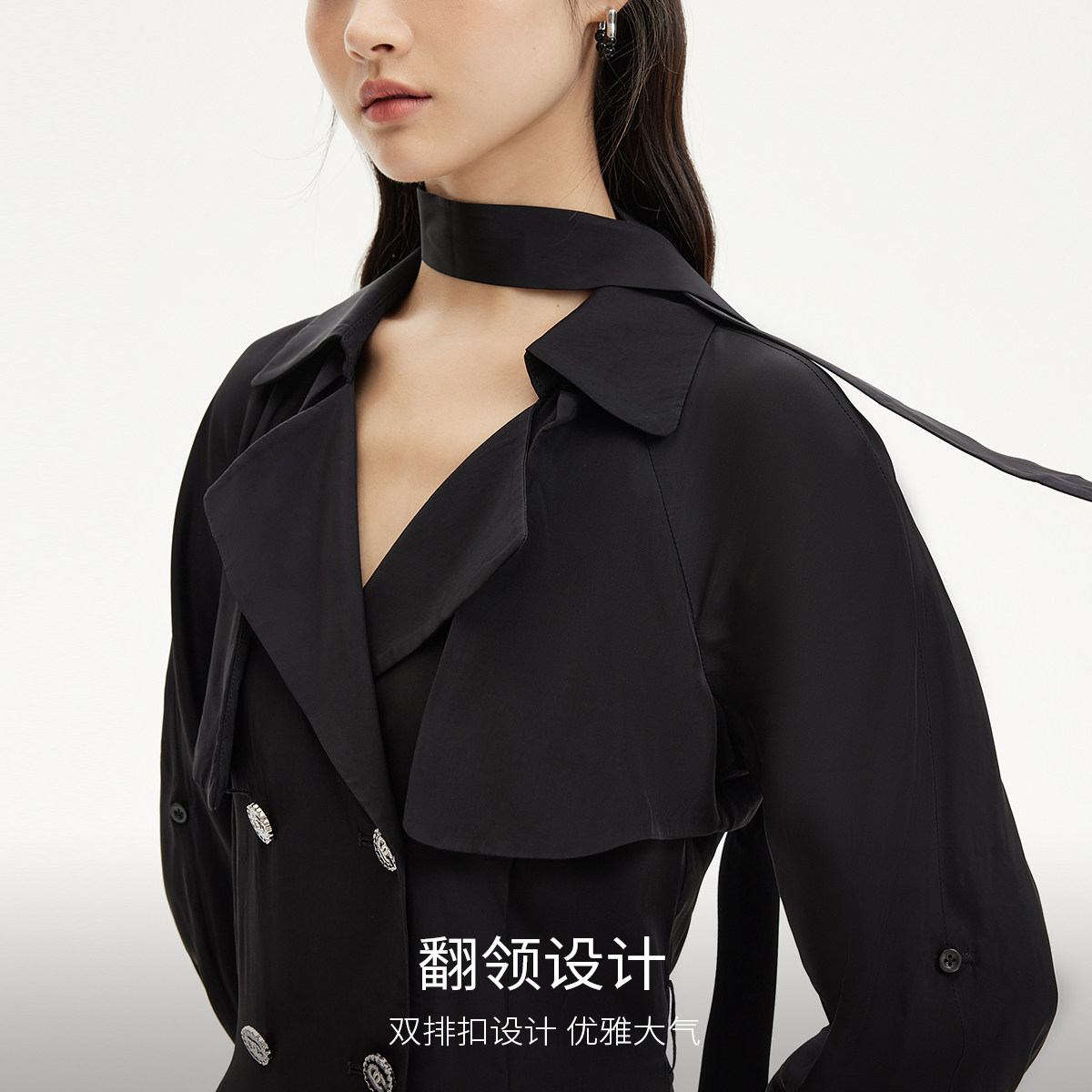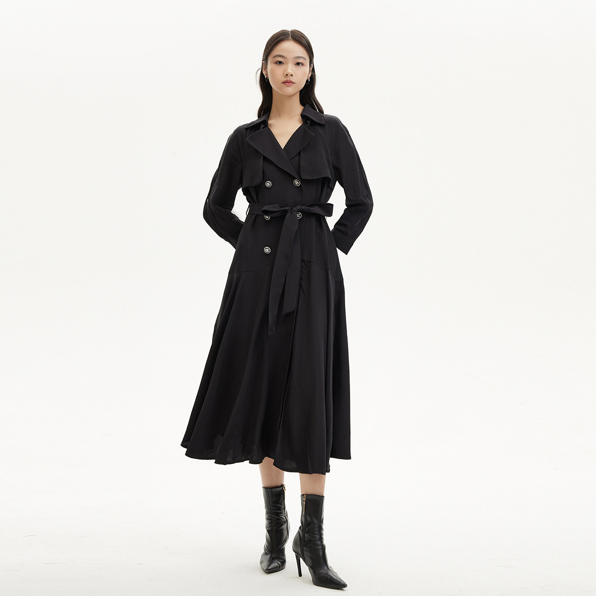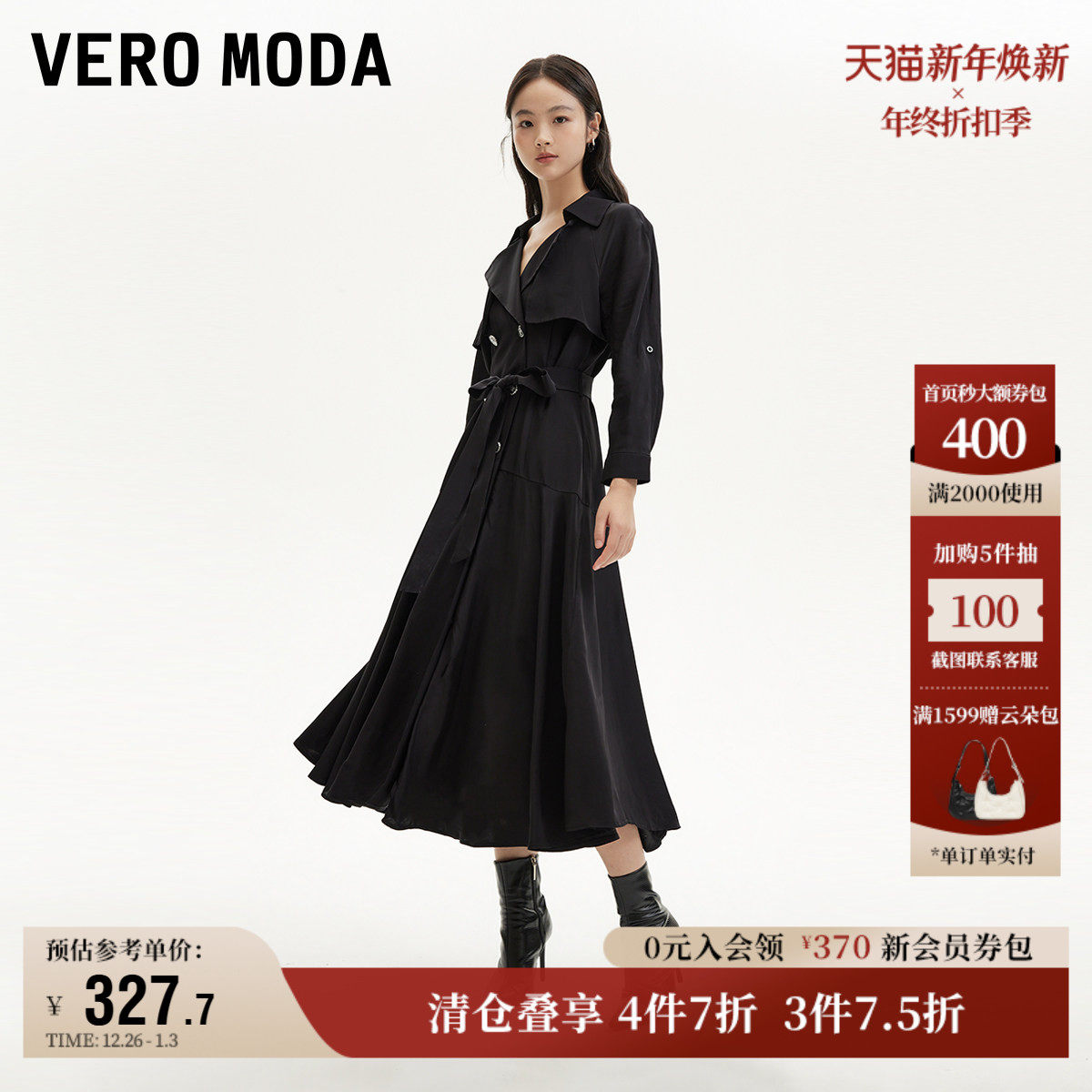 Vero Moda奥莱连衣裙秋冬新款翻领双排扣系带A摆优雅风衣裙子流行