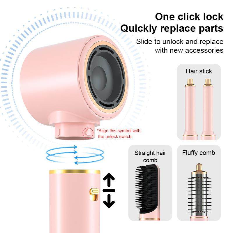 跨境吹风机卷发器直发梳多功能热风梳五合一卷发棒电吹风电热梳