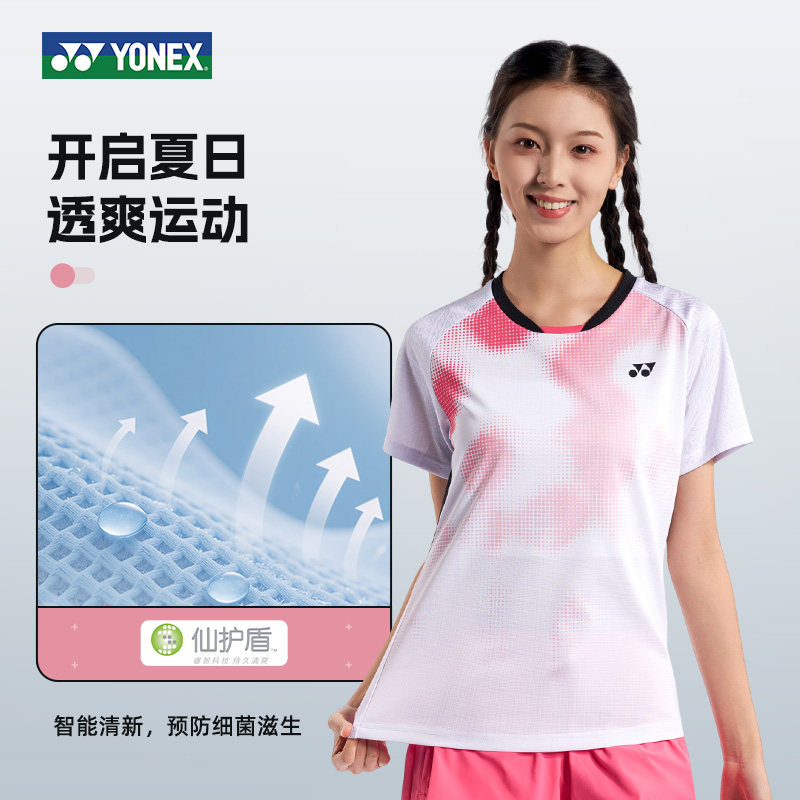 YONEX尤尼克斯羽毛球服女款快干短袖运动上衣T恤夏季比赛服训练yy