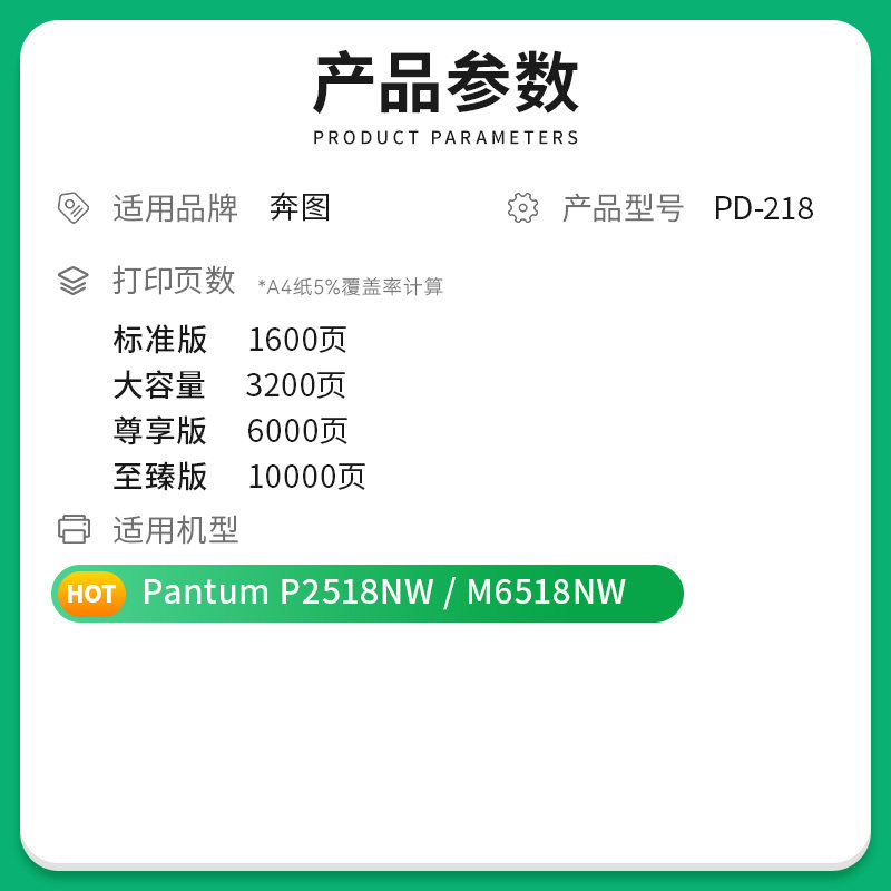 【顺丰】适用奔图m6518nw硒鼓pd218易加粉p2518nw打印机墨盒碳粉盒墨粉仓复印一体机奔腾晒鼓非原装pantum
