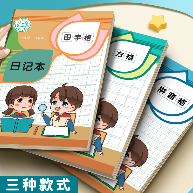 A5课业款小学生日记本专用卡通可爱方格田字格男孩女孩儿童加厚笔记本车线缝线本拼音