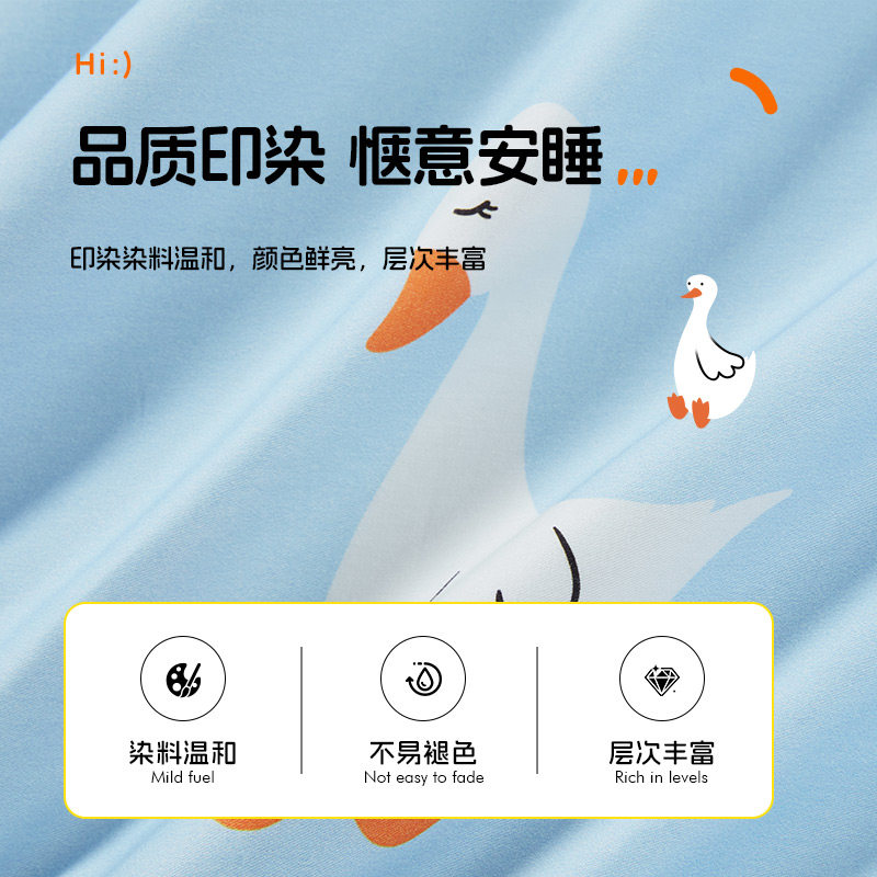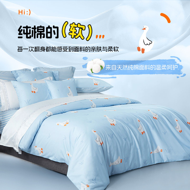 无印良品全棉四件套学生宿舍纯棉卡通儿童被套床单三件套床上用品