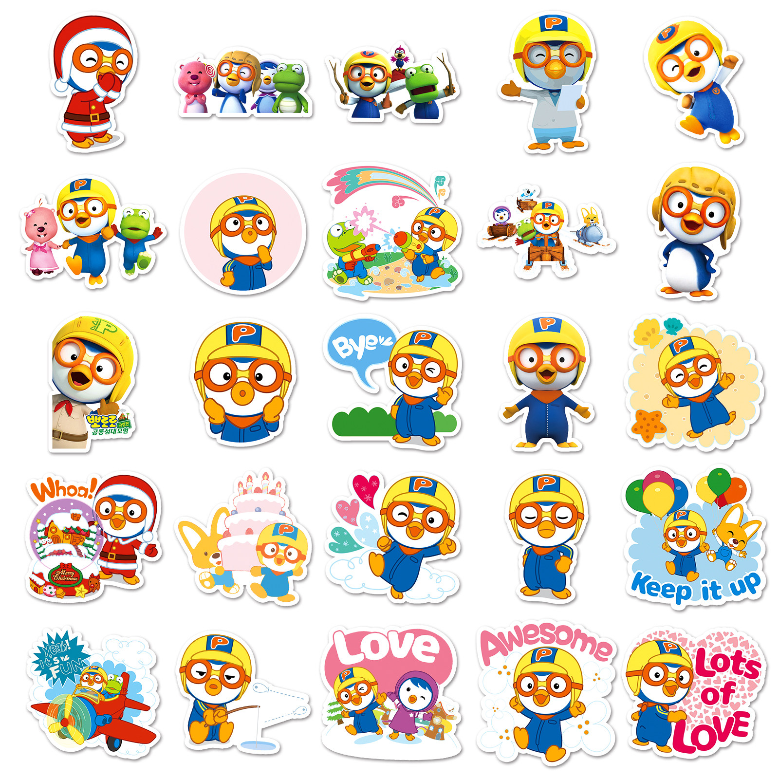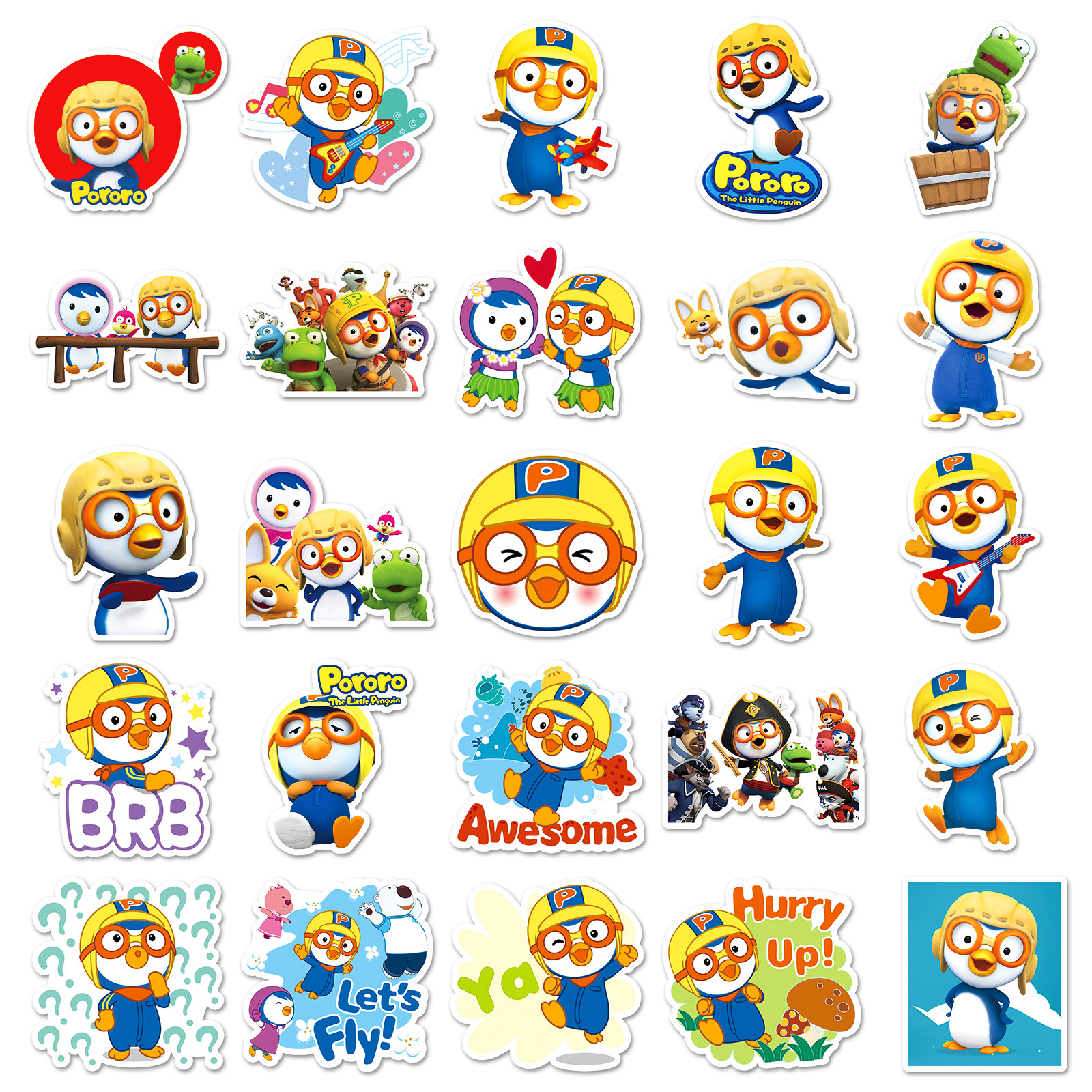 100张Pororo贴纸小企鹅可爱卡通动画创意涂鸦防水装饰手机壳diy行李箱滑板车吉他保温杯头盔电动车手账本贴画