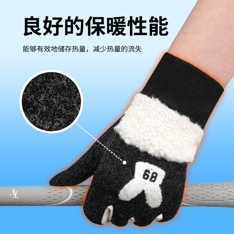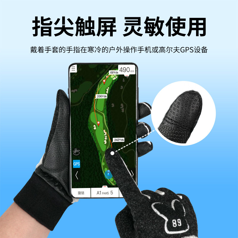高尔夫手套女士冬季保暖加绒手套户外运动防风骑行手套可触屏双手