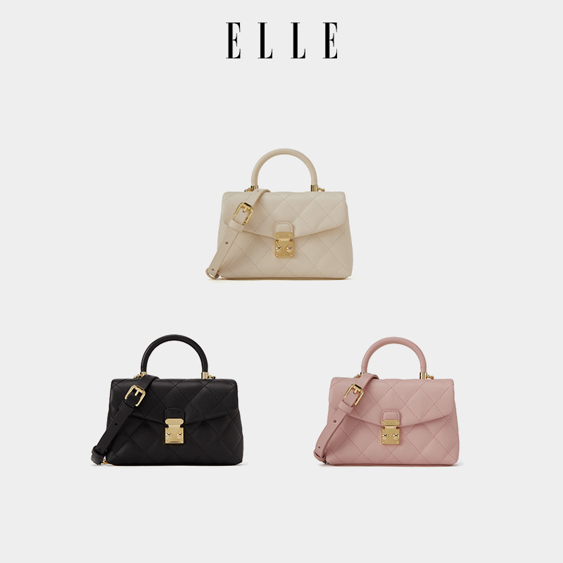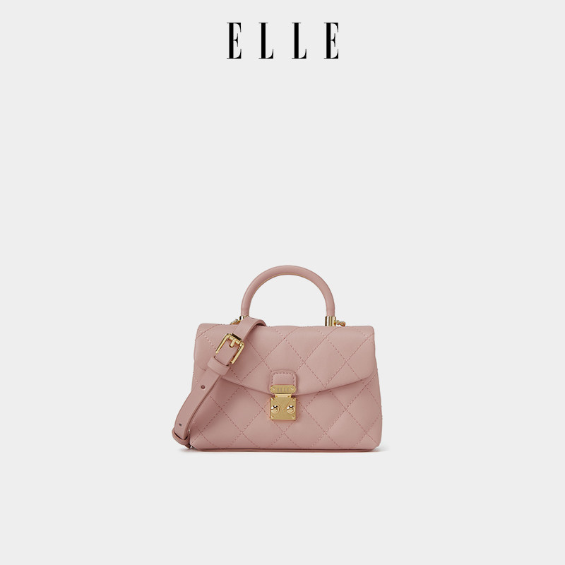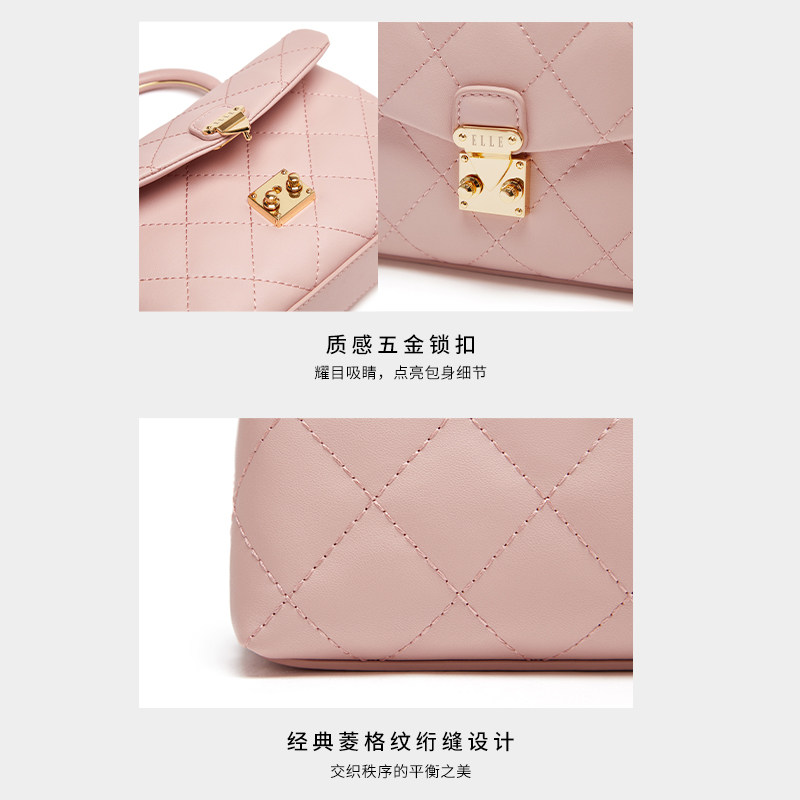 ELLE女包真皮菱格腋下包包链条包小包斜挎包通勤百搭牛皮小方包
