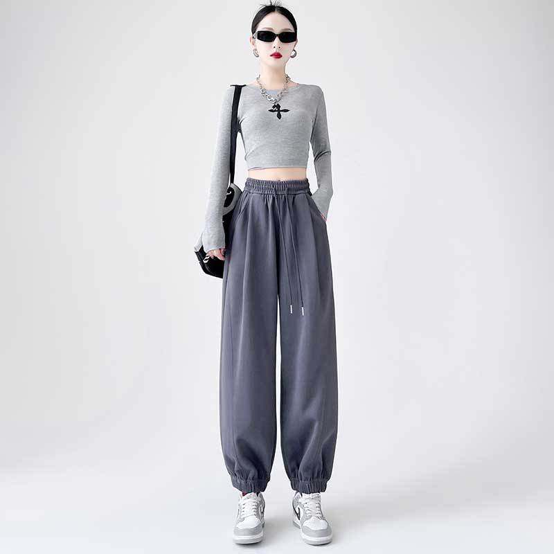 NOME(服饰)女2025春秋冬新款宽松高腰显瘦直筒裤百搭束脚哈伦裤