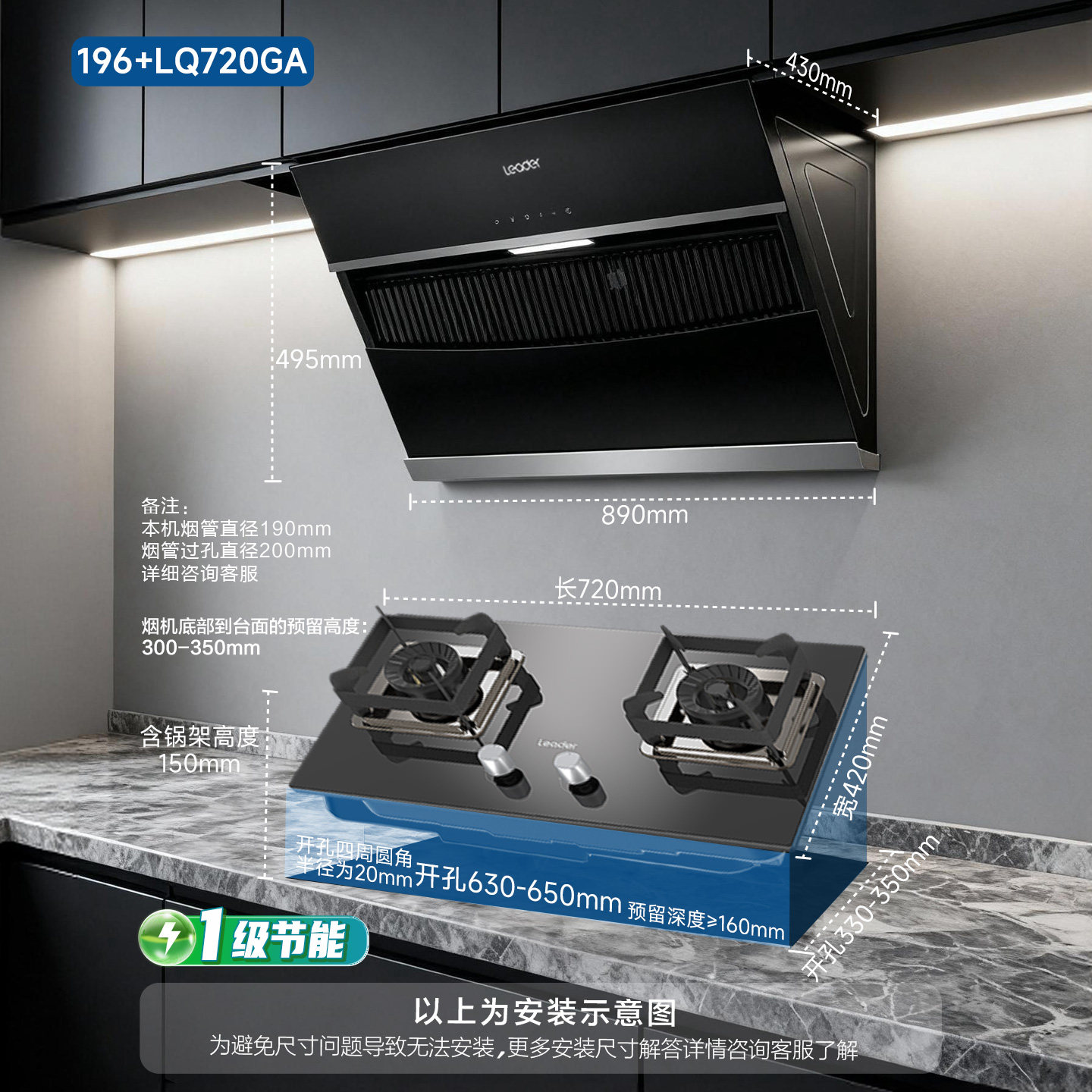 海尔出品统帅IC196侧吸抽油烟机燃气灶一套家用烟灶套装换新补贴