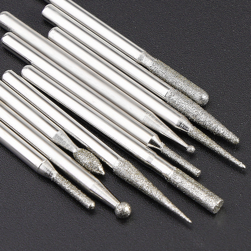 金刚石磨头金刚砂电磨气动针棒3mm套装圆柱合金玉石玉雕工具打磨