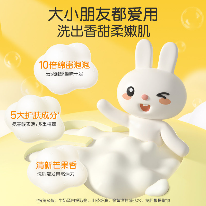 兔头妈妈儿童沐浴露洗发水二合一桃叶精华婴儿宝宝专用洗头沐浴乳