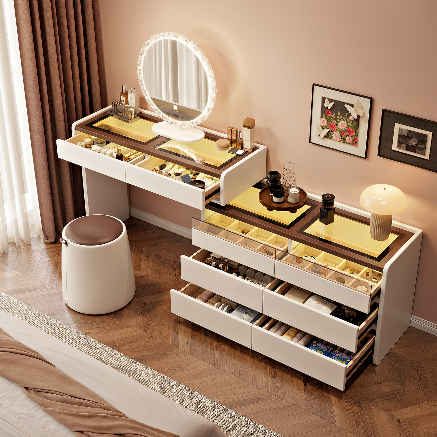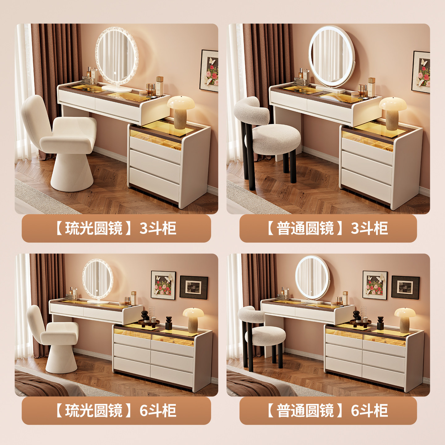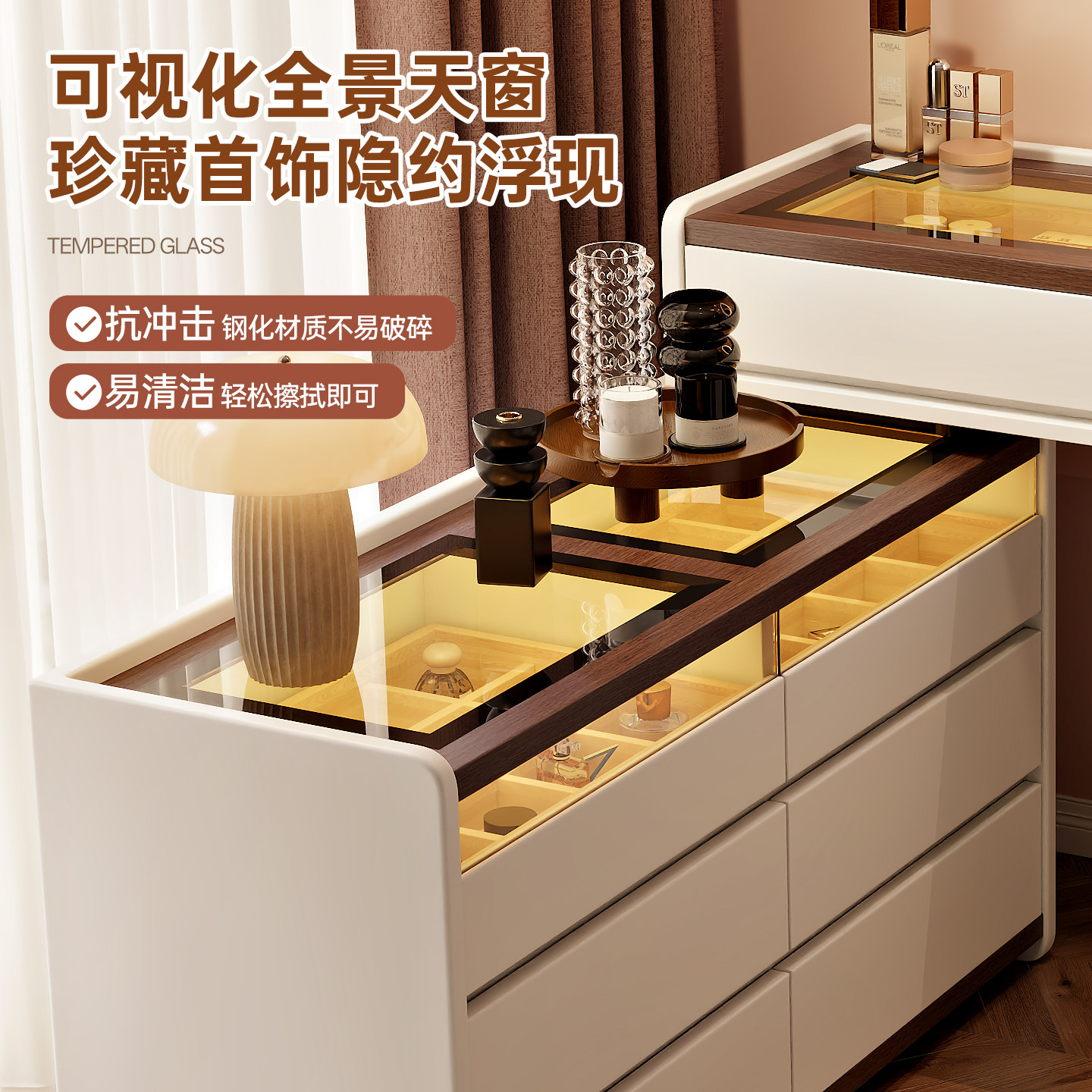 奶油风化妆桌2026新款主卧梳妆台轻奢高级斗柜实木收纳一体化妆台