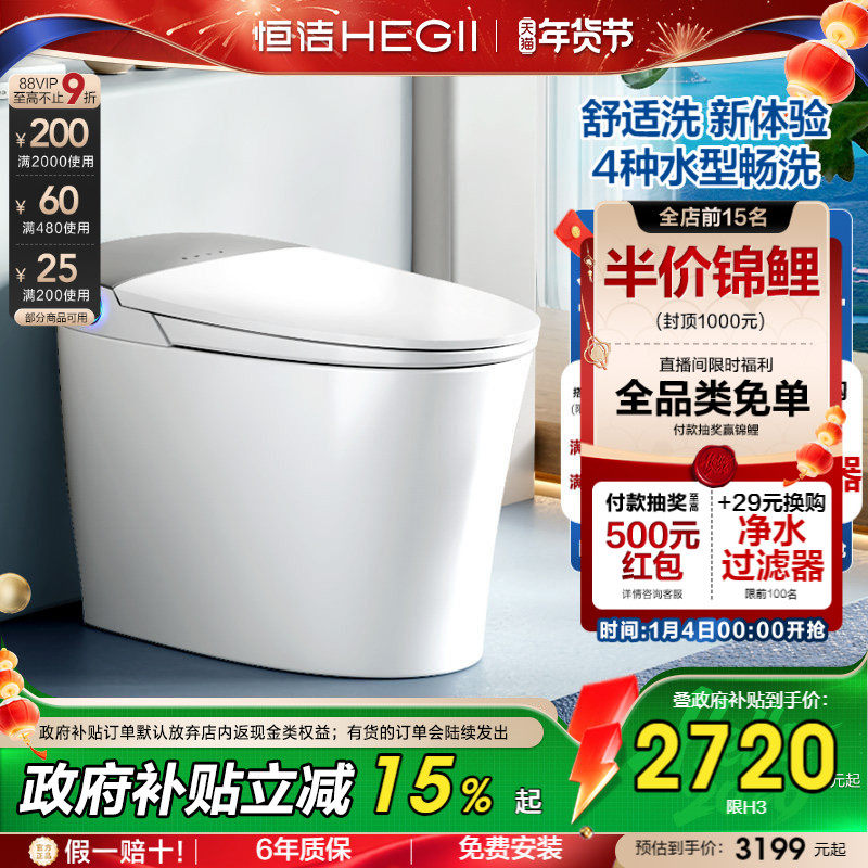 恒洁智能马桶全自动一体式坐便器家用零压无水压限制舒适洗H3
