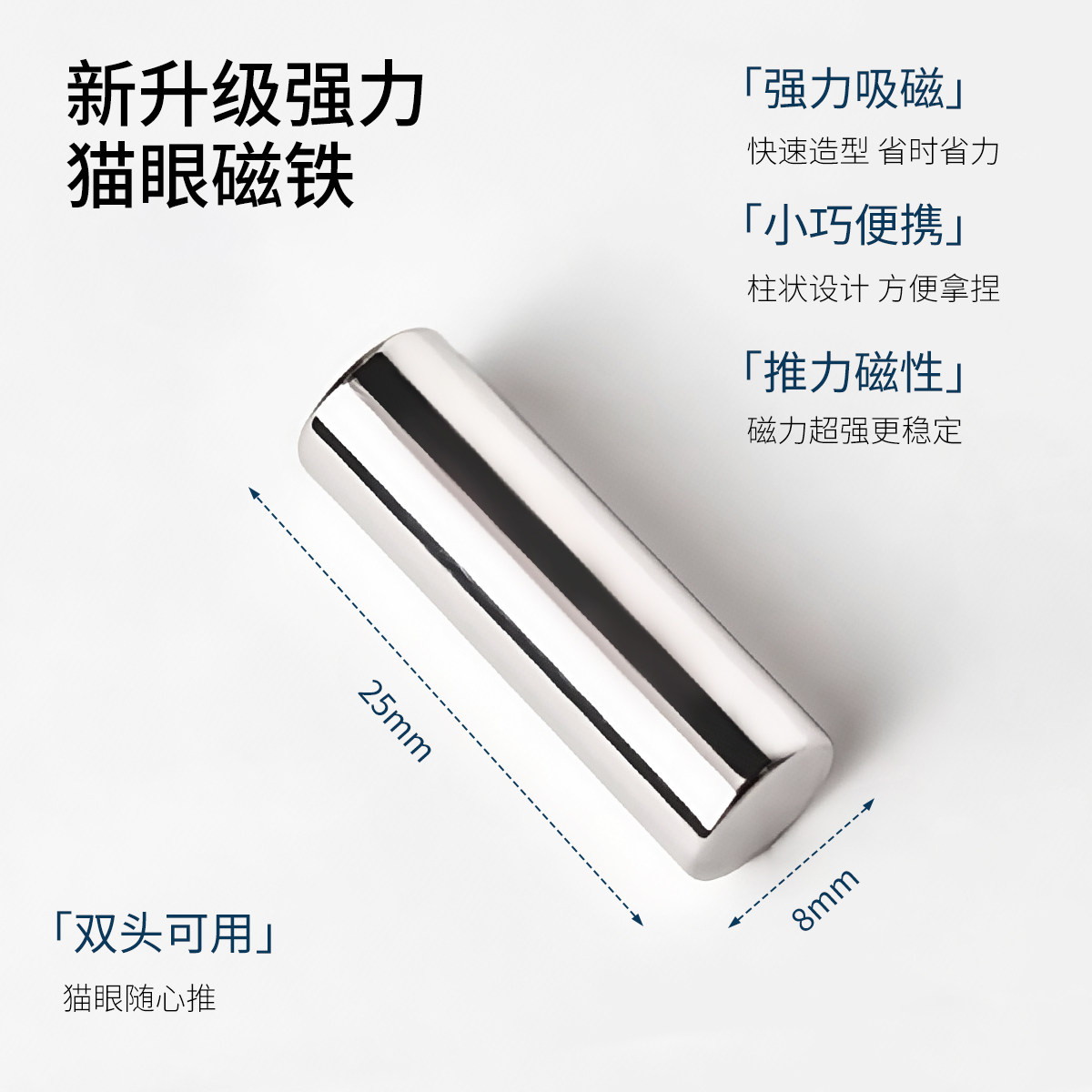 美甲吸猫眼磁铁强磁圆柱吸铁石超强吸力三合一做美甲工具强力法式