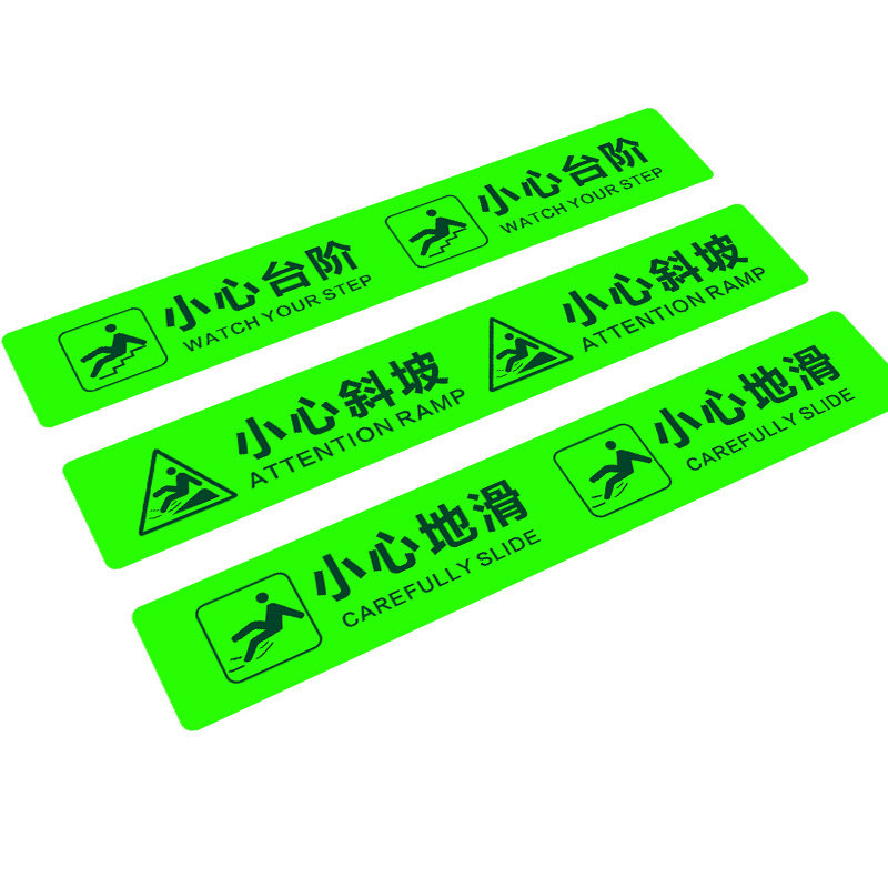 小心台阶地贴夜光提示牌创意小心地滑标识牌斜纹贴纸注意脚下安全楼梯提示贴小心碰头提示牌消防荧光牌指示牌