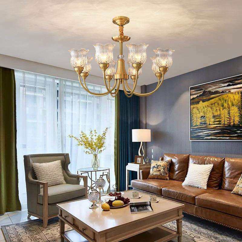 美式吊灯全铜客厅灯简约浪漫卧室灯书房灯乡村复古餐厅全铜吊灯