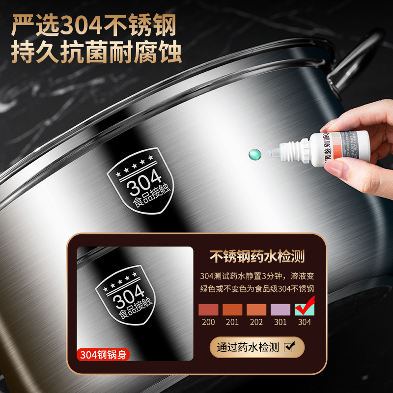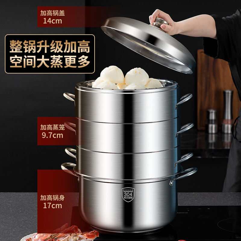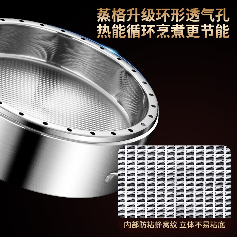 九阳304不锈钢蒸锅特厚加厚家用燃气灶多层无孔大容量原味蒸饭锅