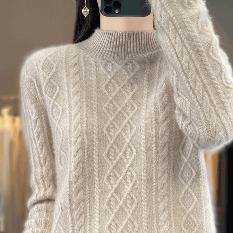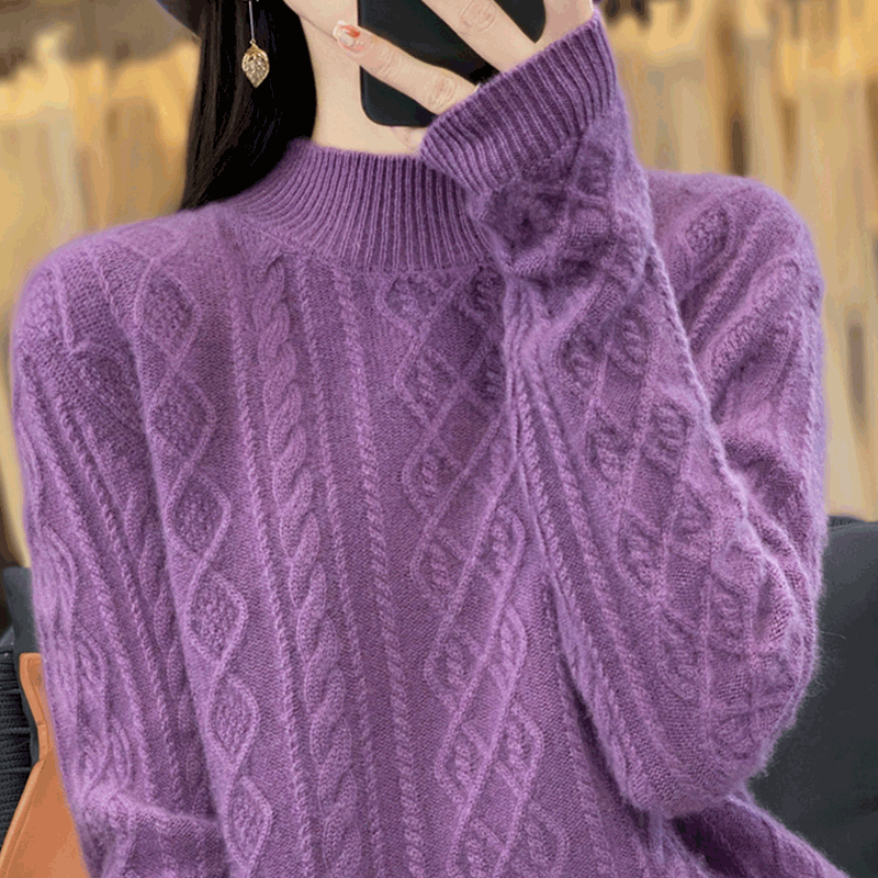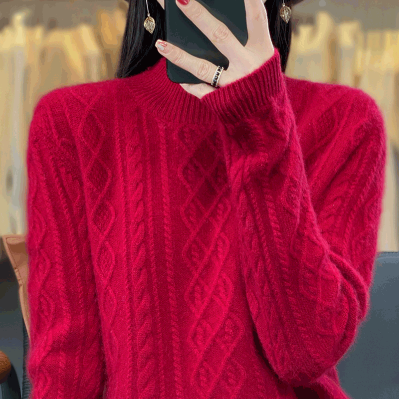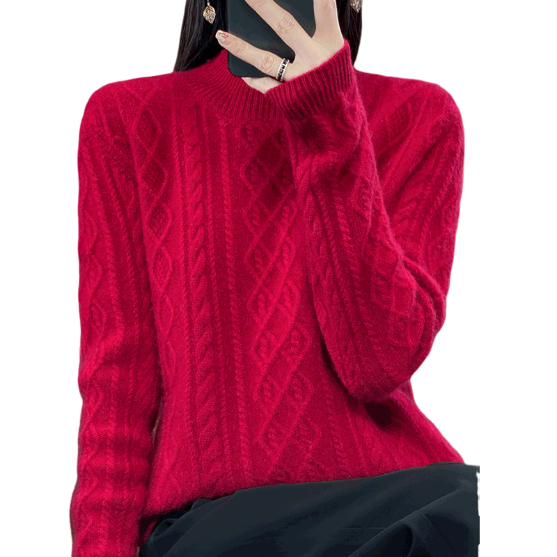撤标撤柜(A)半高领打底衫女秋冬季保暖上衣中年妈妈大码麻花毛衣