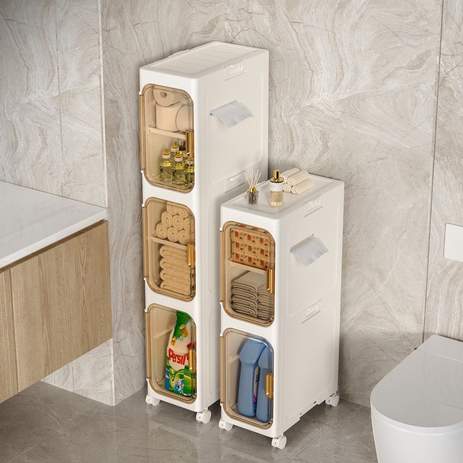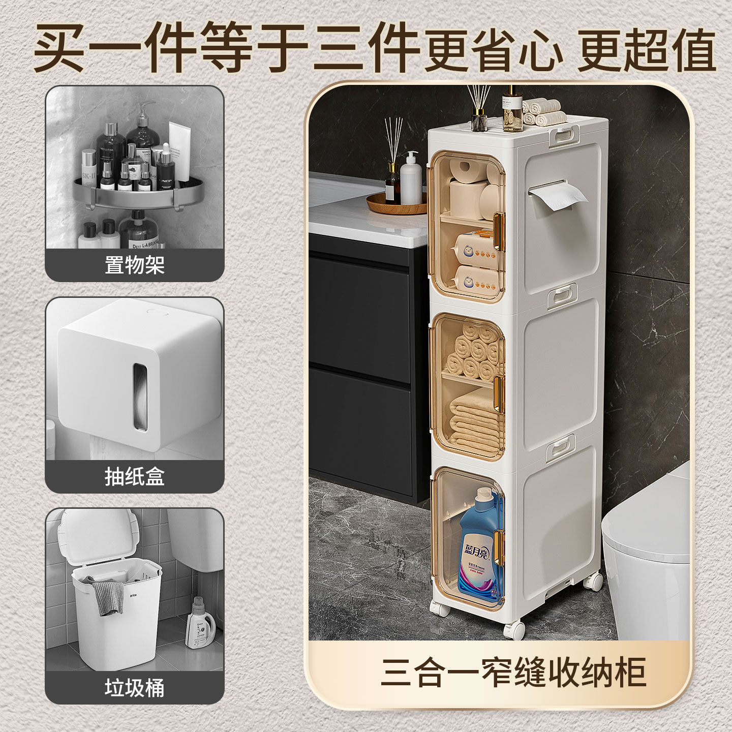 卫生间置物架落地厕所马桶夹缝抽屉式收纳浴室免安装洗漱台储物柜