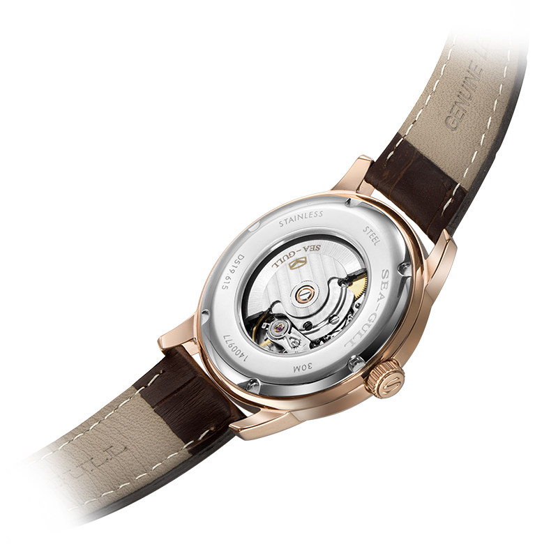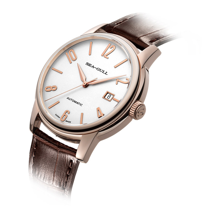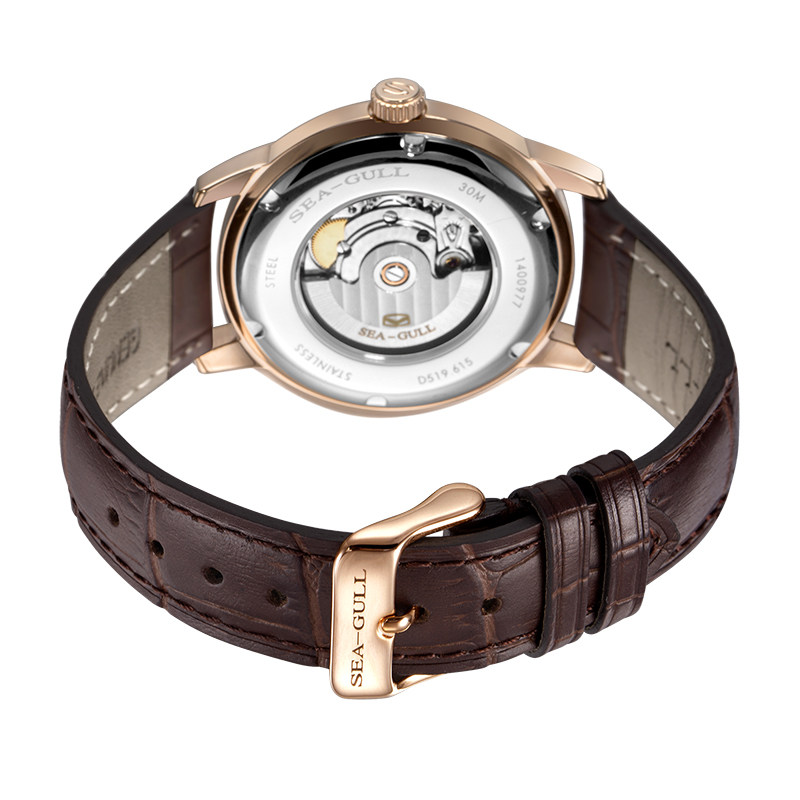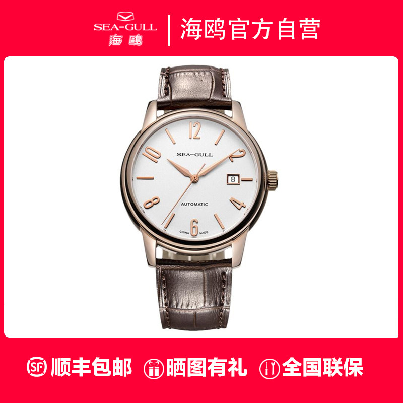 海鸥表男士机械表经典三针日历显示国民系列腕表615白盘棕带