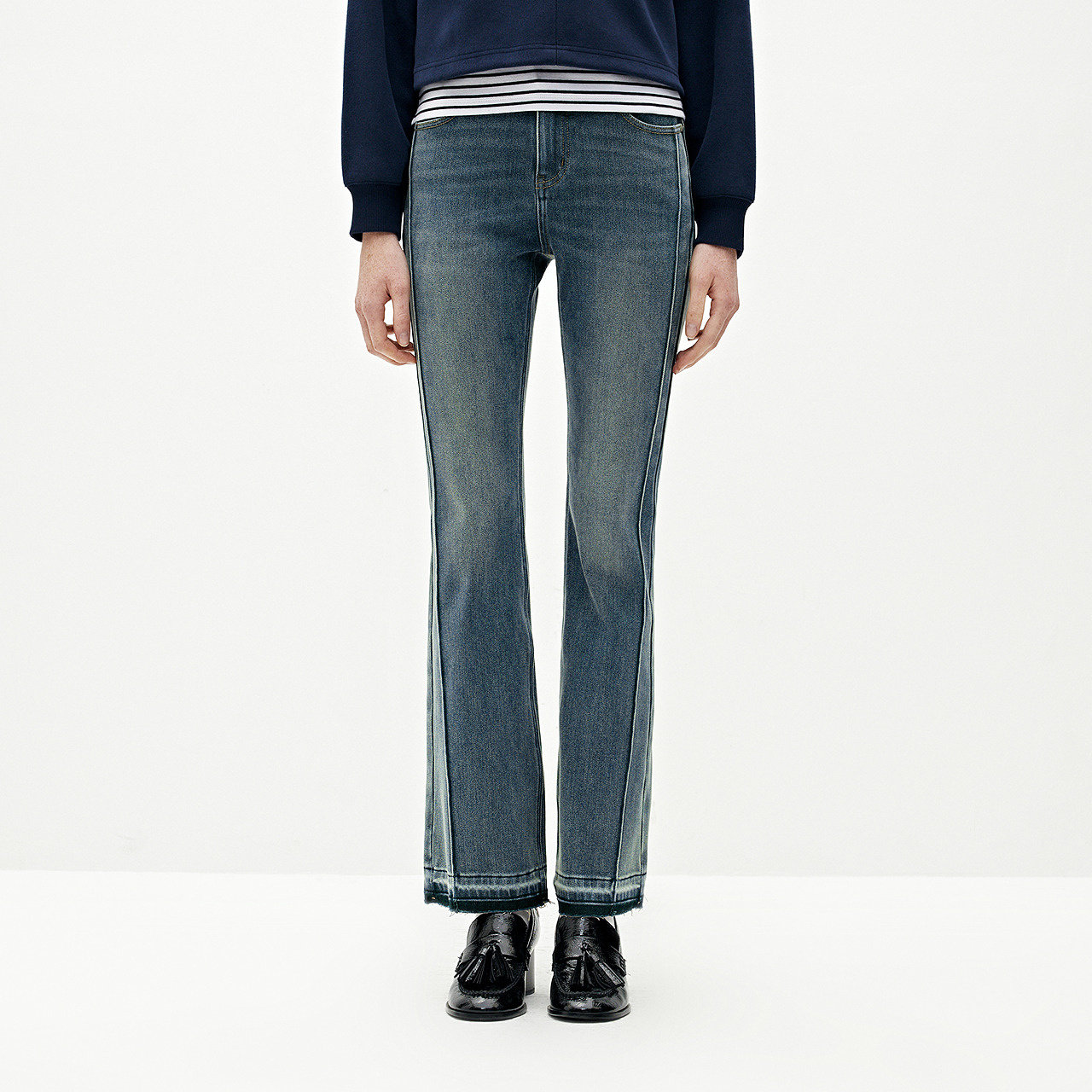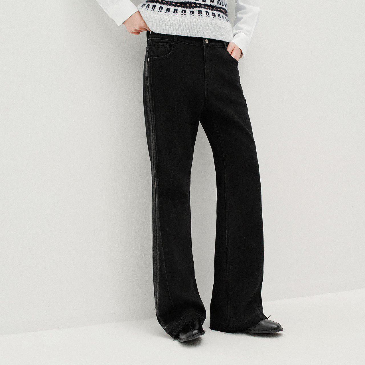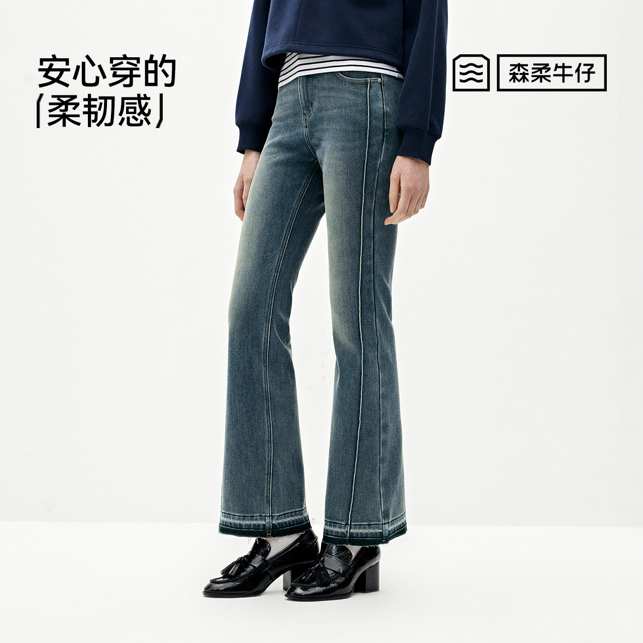 商场同款|森柔森马牛仔裤女冬季弹力分割抓绒长裤2025新款喇叭裤