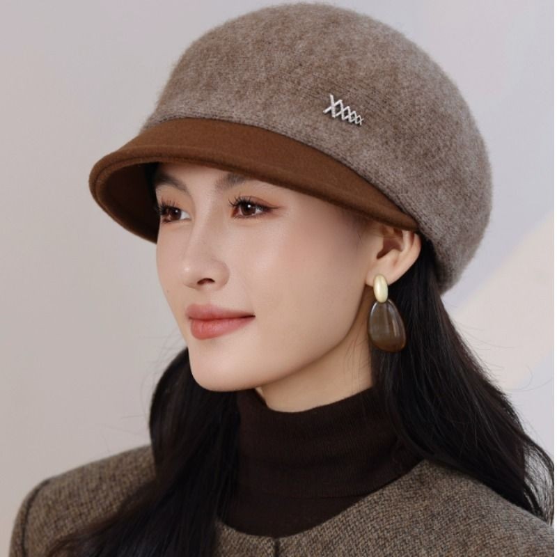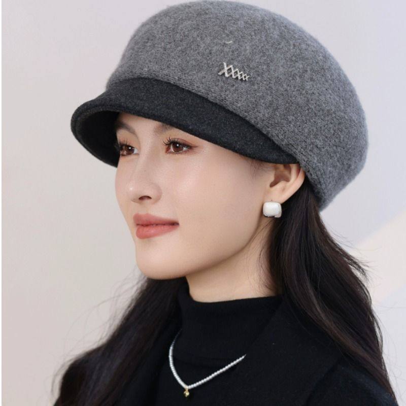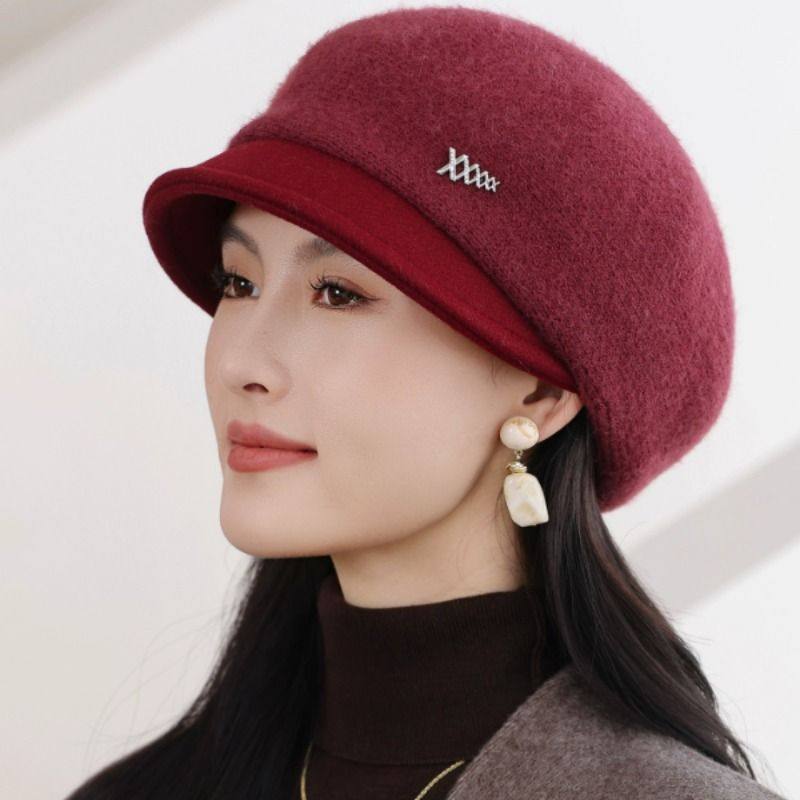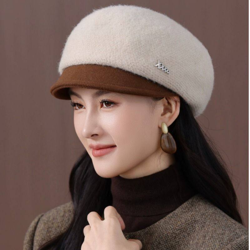 秋冬季保暖鸭舌帽贝雷帽毛线帽女款帽子新款加厚女帽妈妈时尚洋气