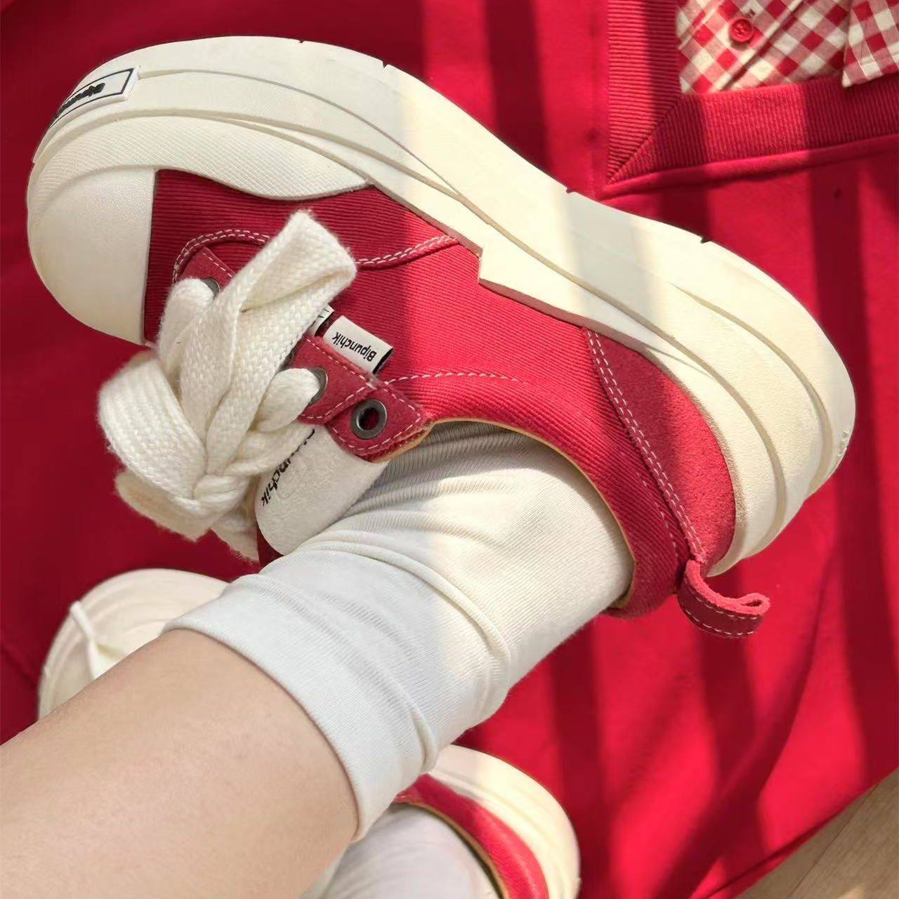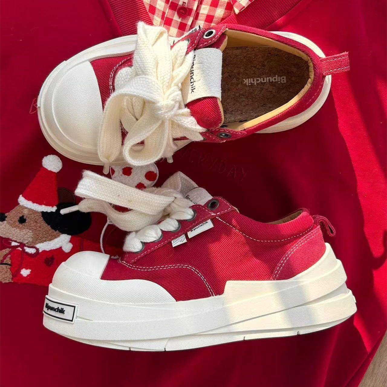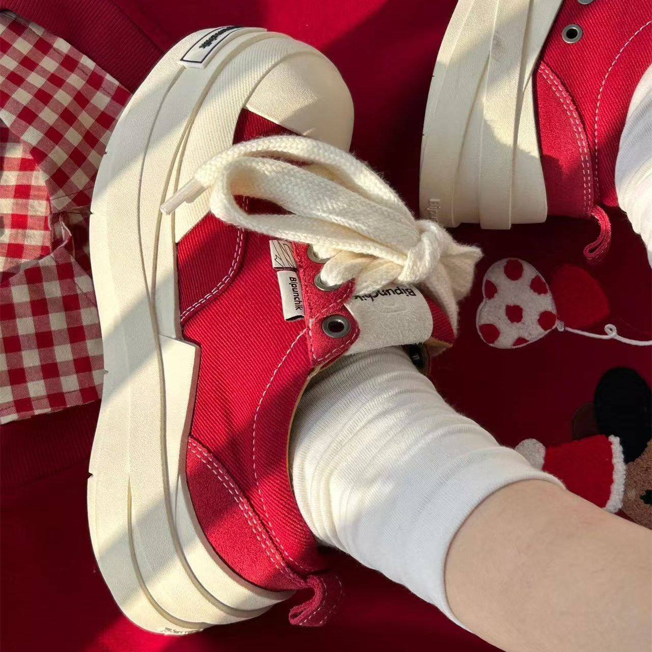 新款红白色小众设计大头鞋女校园风低帮百搭滑板鞋增高轻便帆布鞋