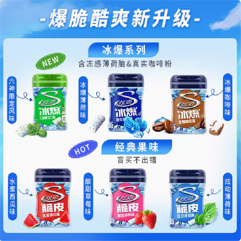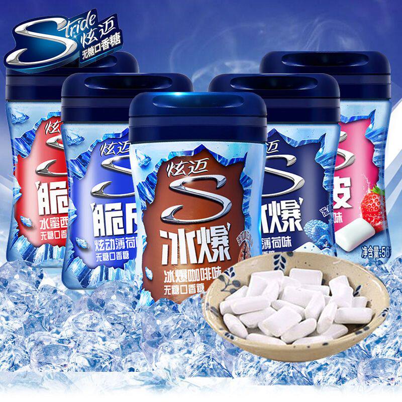 无糖口香糖56g瓶装无糖薄荷口香糖果清新口气零食咖啡味西瓜味