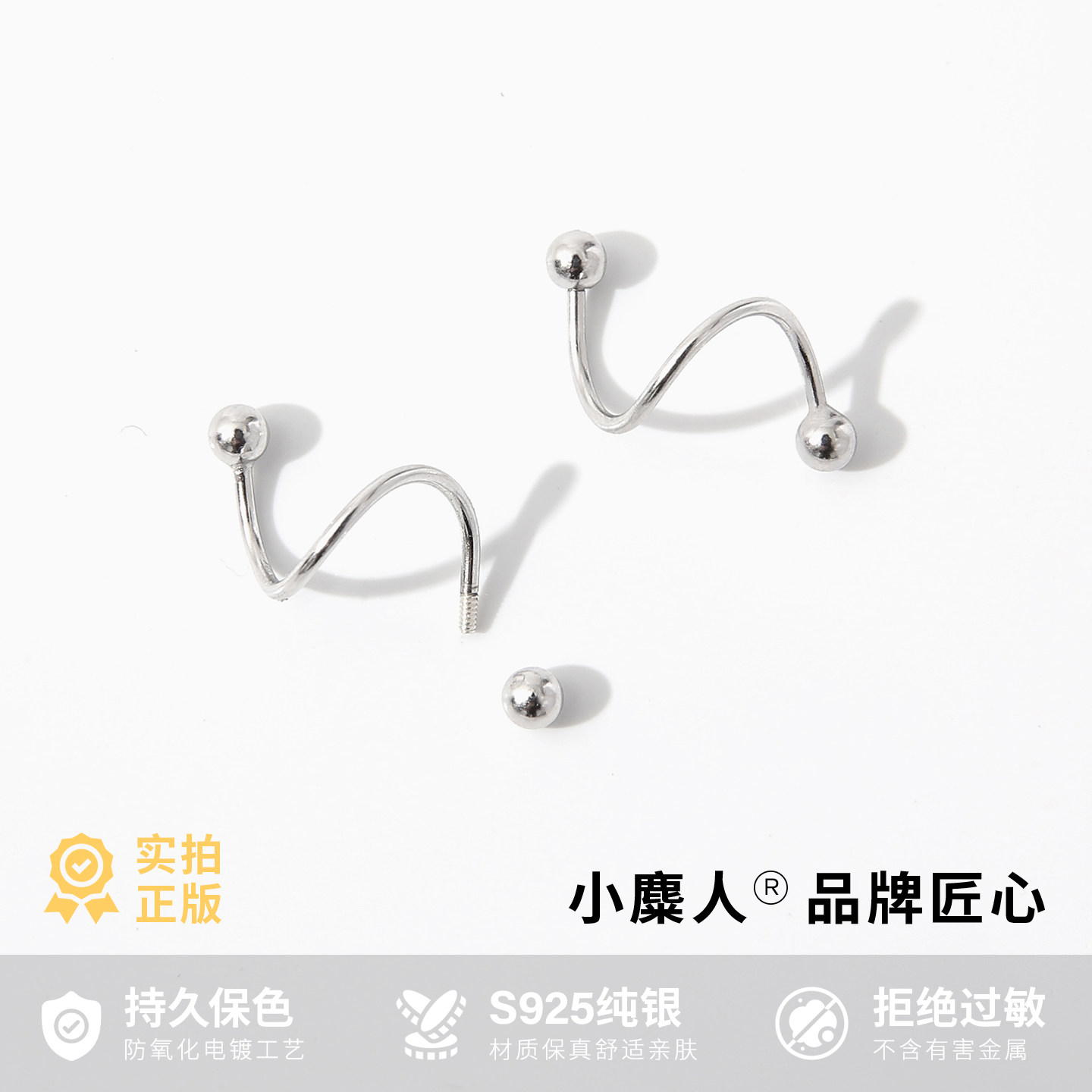 小麋人925耳钉女纯银耳饰弹簧高级感耳环时尚气质耳圈精致防丢