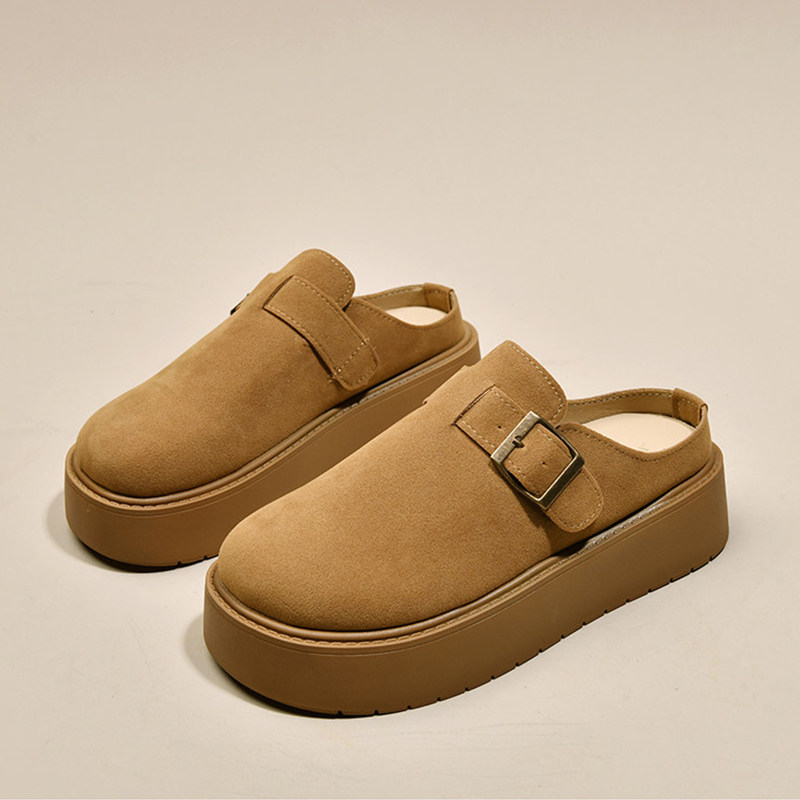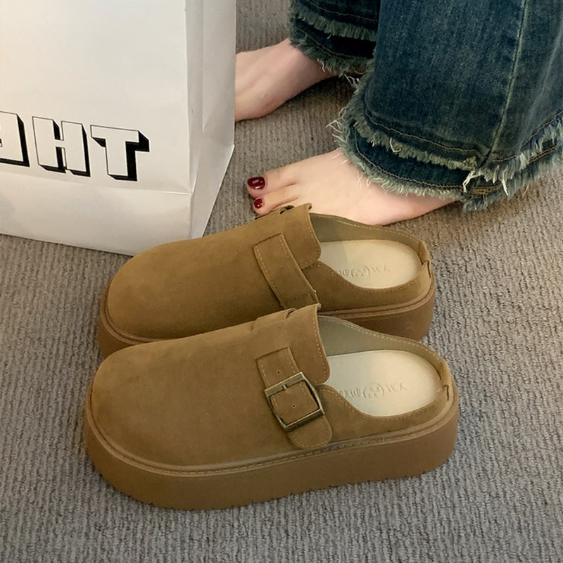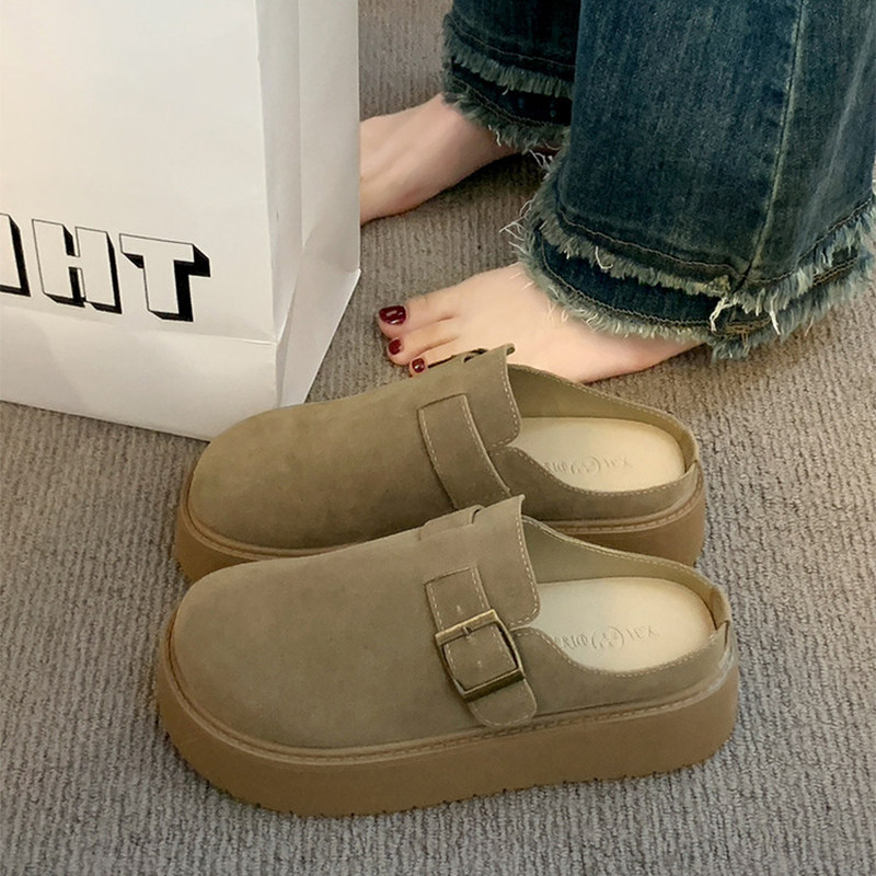 内增高6cm~厚底真皮勃肯鞋女2025秋冬新款真皮包头半拖鞋女外穿