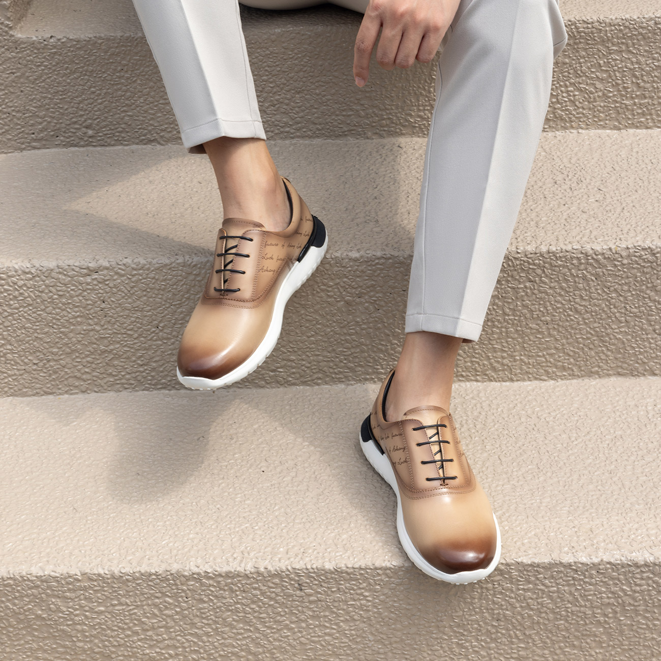 免开胶真皮休闲皮鞋男款软皮厚底增高透气商务系带平底缝线德比鞋
