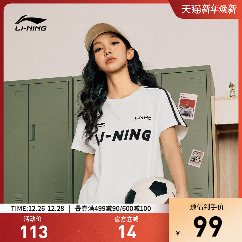 李宁短袖女士夏季新款运动上衣圆领女装休闲半袖白纯棉运动T恤女