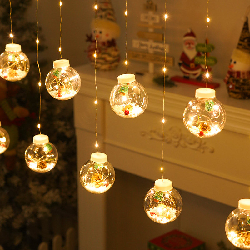 led窗帘灯星星灯许愿球圣诞老人雪人装饰房间布置彩色灯闪灯串灯
