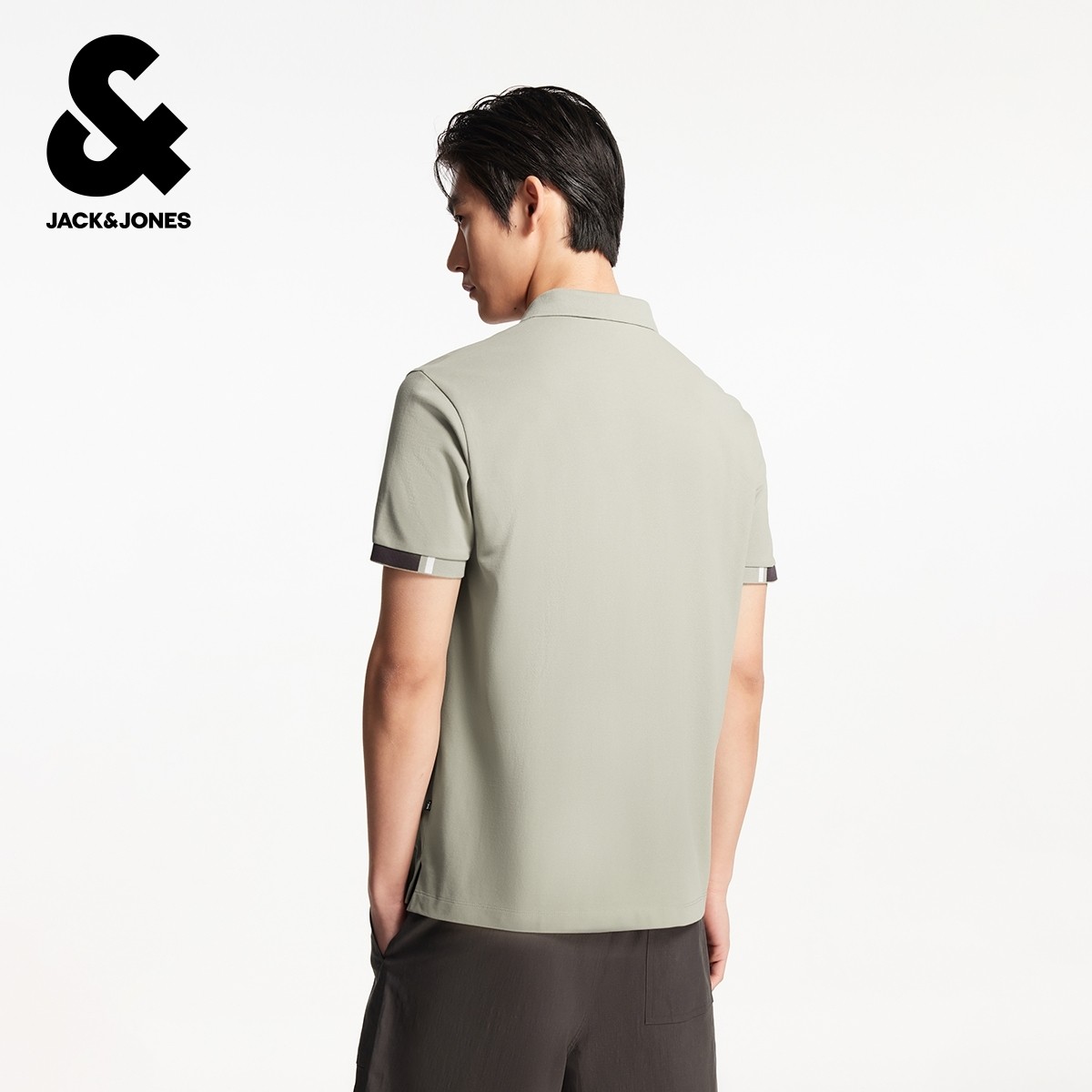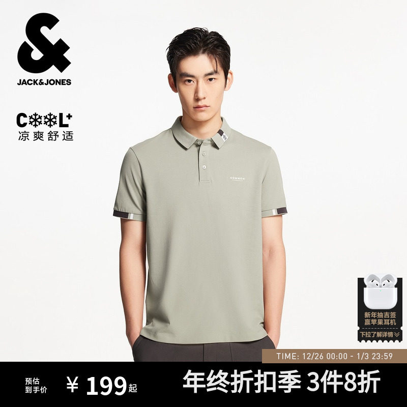 杰克琼斯男装秋季新款式刺绣舒适清爽短袖上衣翻领T恤直筒polo衫
