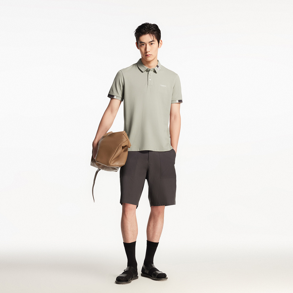 直筒版型,舒适清爽面料,罗纹撞色翻领