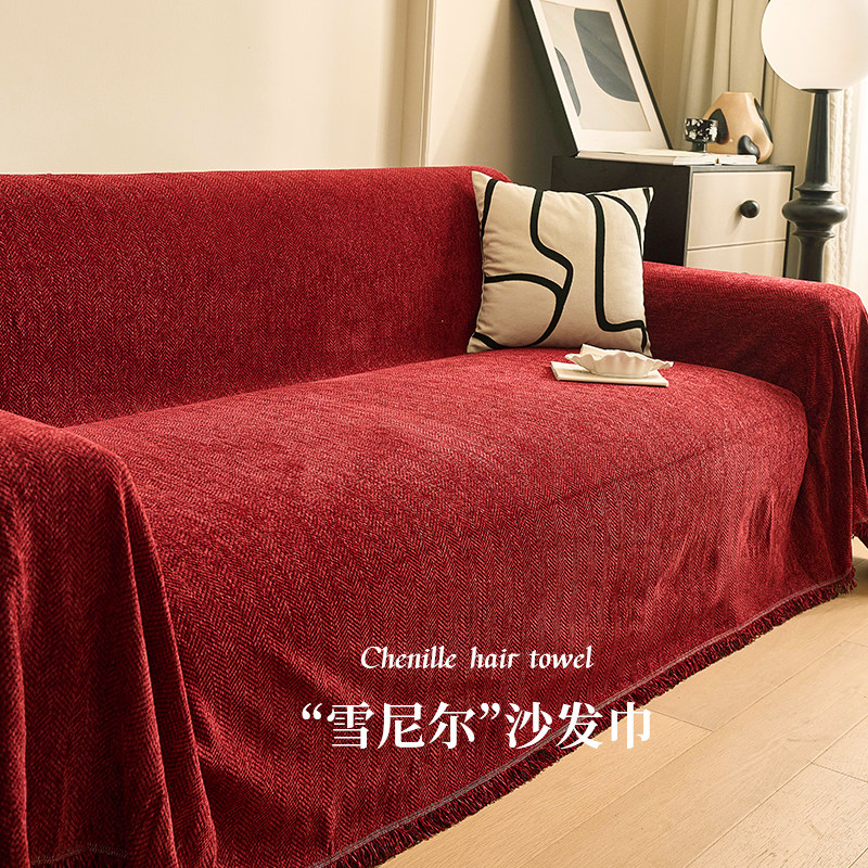 新年沙发盖布盖巾2025红色沙发巾防猫抓整张全盖安可拉红沙发套罩