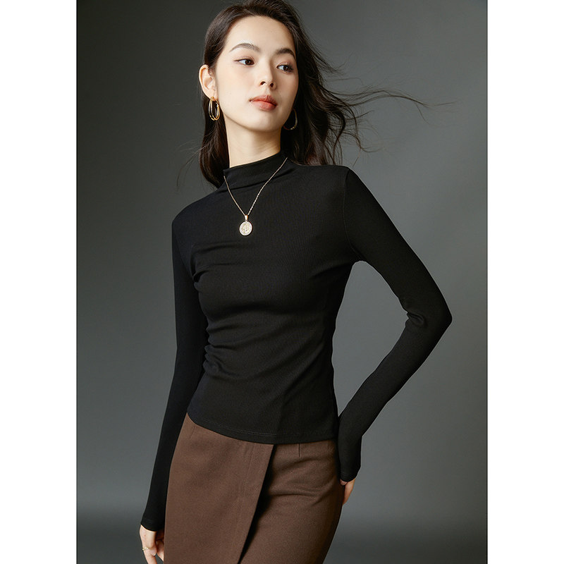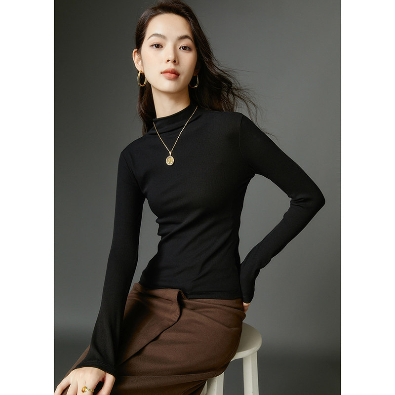 晚白2026年春新款时尚简约上衣百搭休闲纯色弹力打底衫女