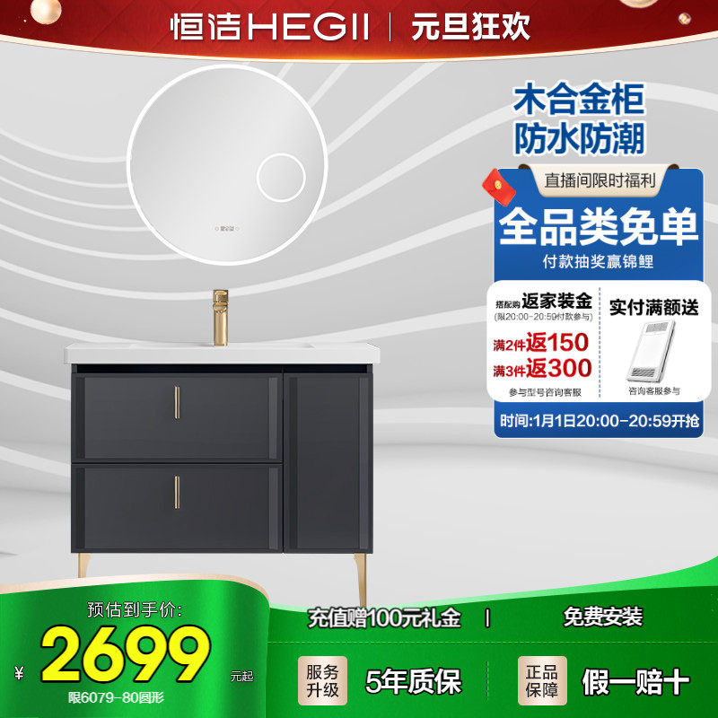 N恒洁旗舰店浴室柜组合小户型洗手盆洗漱台卫浴柜台上盆陶瓷一体