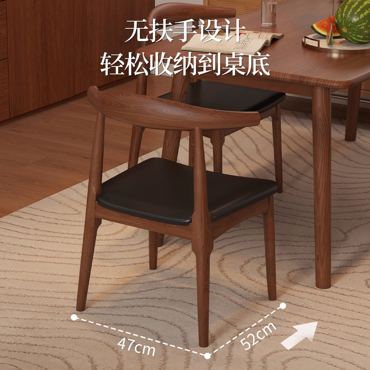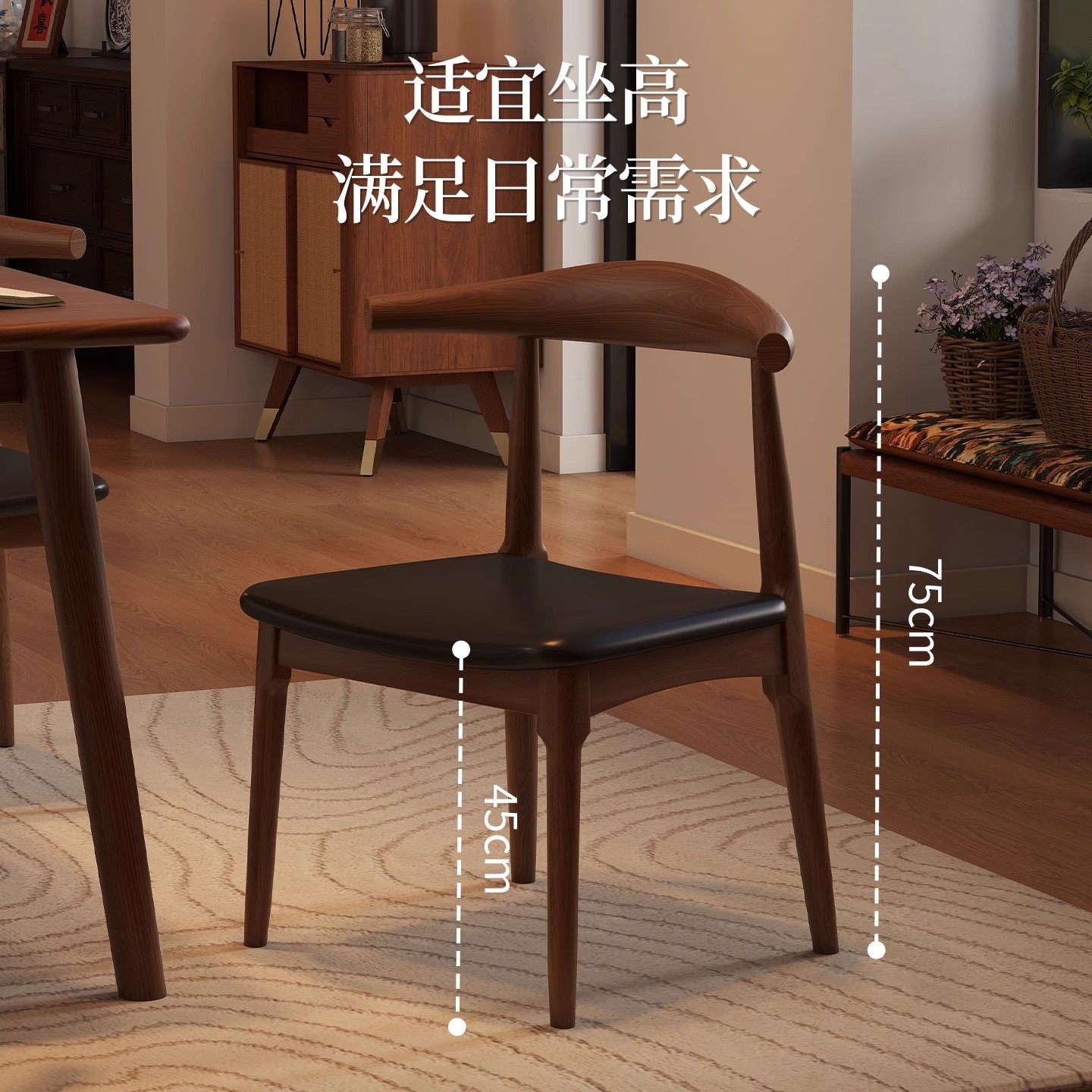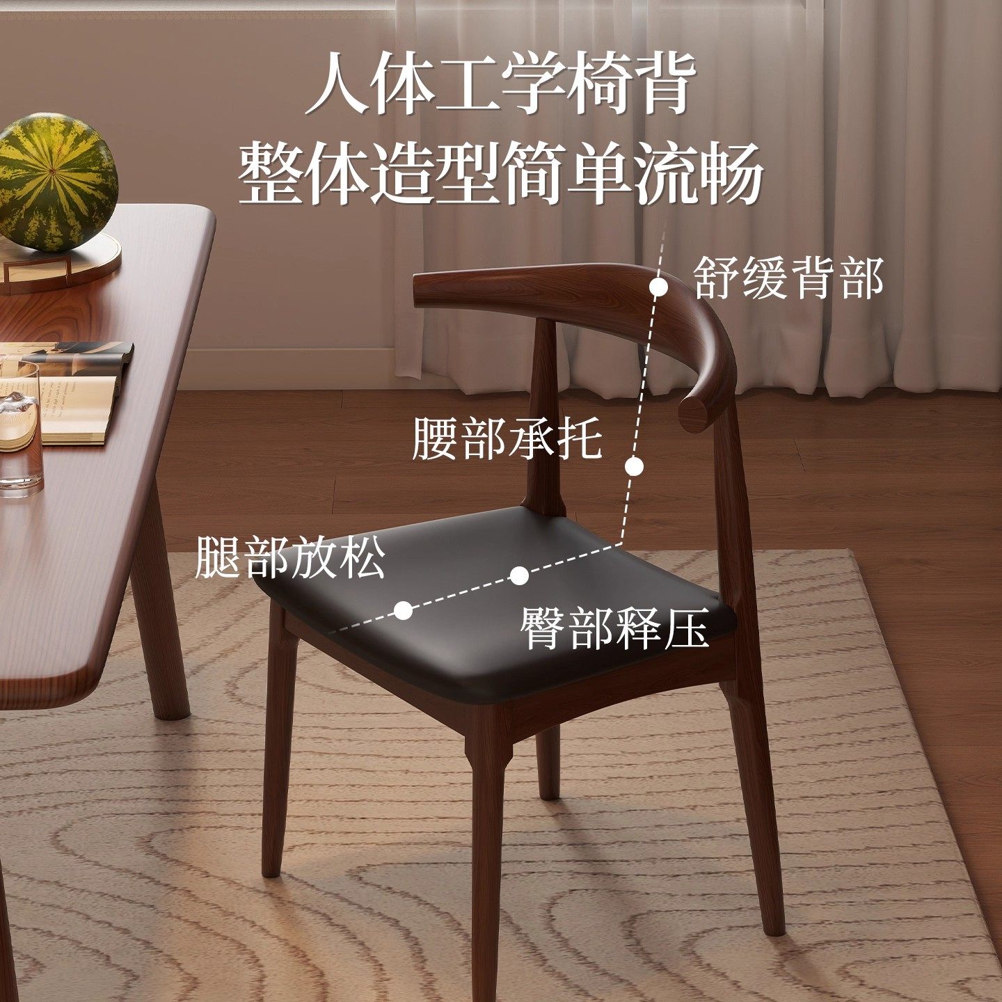 全实木餐椅家用书桌椅餐桌椅子靠背椅牛角椅结实久坐餐厅吧台书房