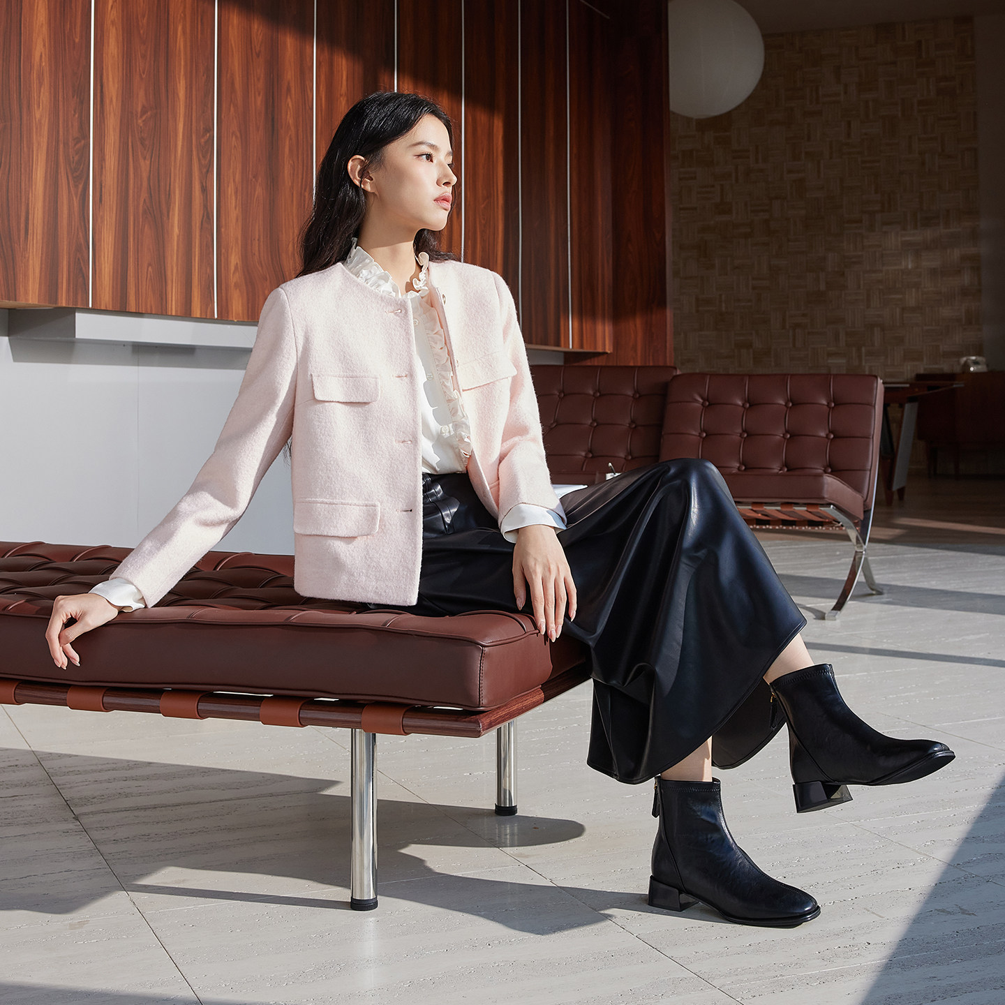 奥康 女鞋2025冬季加绒保暖时装靴精致方圆头舒适透气百搭短靴