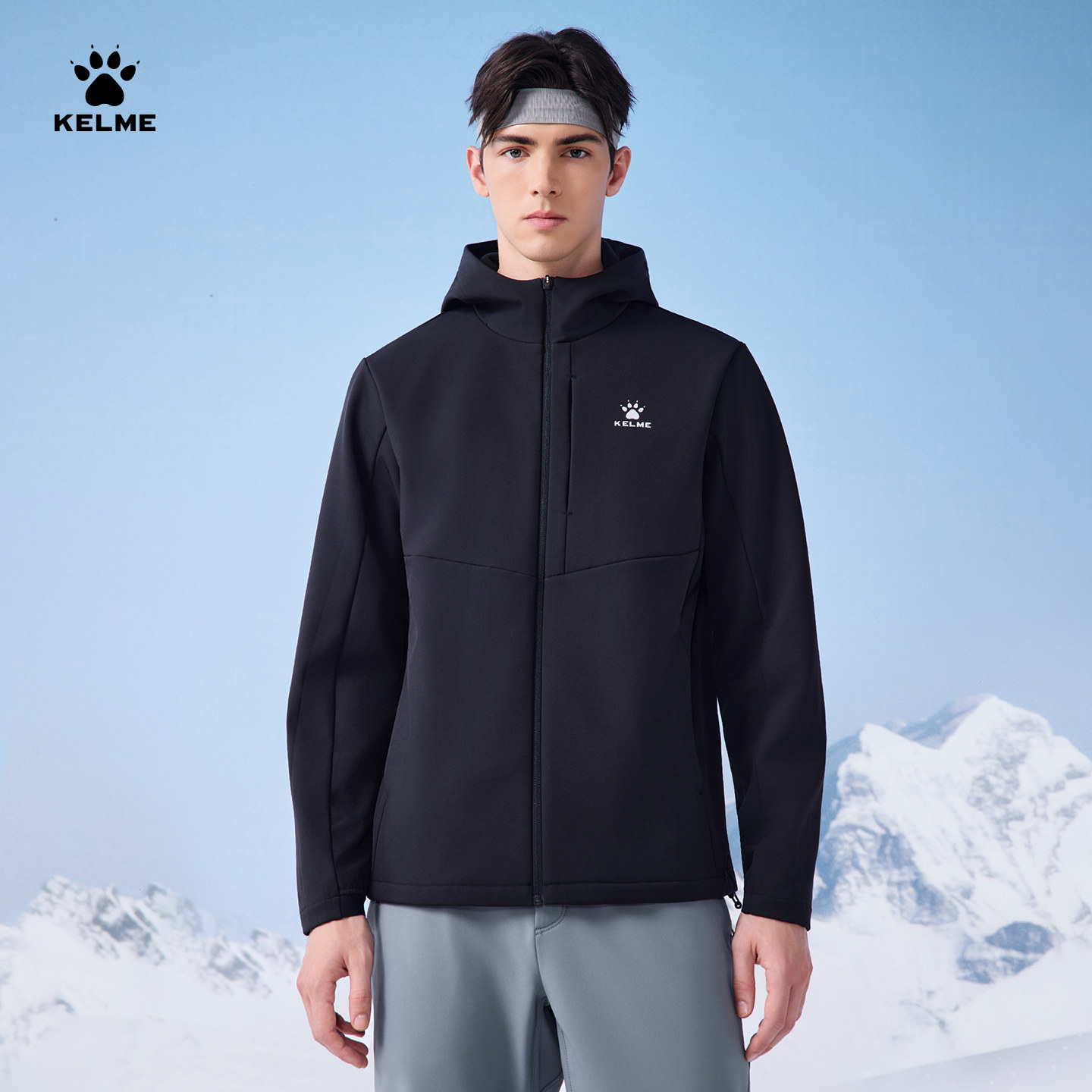 KELME卡尔美软壳风衣男秋冬梭织加绒运动外套防泼水连帽夹克冲锋