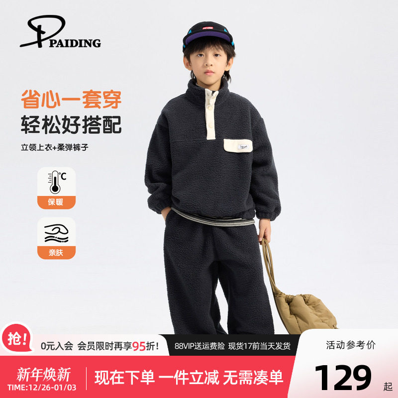 派町童装男童卫衣套装2025冬新款男孩两件套上衣裤子加厚加绒保暖